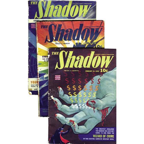 <B>Shadow (Pulp) Group (Street & Smith, 1943) Condition: Average GD/VG.</B></I> Here is a complete run of <B>Shadow</B></I> pulps dating from January 1, 1943 through November 1943. After the November issue the publication switched to a digest format. Most of these have very nice paper quality. Bookery's Guide to Pulps approximate value for group = $400. <BR><BR><B>Important notice:</B> Heritage usually auctions material at the rate of 200-250 lots per hour. On some occasions eBay Live bid software or the Internet may not be able to keep up with the pace of the auction. We recommend placing a realistic absentee bid now as insurance to avoid disappointment. Occasionally the auctioneer may eliminate or reject an eBay Live bid, and the auctioneer may also reopen a lot after the close of the eBay live bidding (usually because we missed an audience bid), and may reject your bid even if it shows you as the winning bidder. By bidding via eBay Live, you agree that Heritage may award the lot to another bidder at its sole discretion under the circumstances described above or any other reasonable circumstances. Since eBay bids are not shown to us until we open the lot on the floor, we treat those bids just like floor bids. In most cases the floor responds before the eBay bid is presented to us, due to Internet lag time, so for consistency we have made it a policy that floor bids are always considered first over tie eBay live bids. Also please note that all Heritage lots purchased through eBay Live carry a 22.5% Buyer's Premium. Please make sure you read the Terms and Conditions before you bid. This lot is being auctioned in conjunction with a live floor auction by Heritage Auction Galleries. All final auction and invoice information will be supplied by Heritage Auction Galleries, and all other information should be considered preliminary. Lot:41001 <BR><BR><B>Winning Notification and Billing:</B> After the FINAL session in this auction is complete, Heritage will send e-mail and snail mail invoices. This process normally takes several days. All final auction and invoice information will be supplied by Heritage Auction Galleries, and all other information should be considered preliminary. <BR><BR>This auction will be conducted on a live auction floor and over the Internet through eBay Live. If you choose to place an absentee bid, please take a moment to <font color='#0000ff'><u><a href='http://pages.ebay.com/liveauctions/help/before/laabsentee.html'>learn how eBay Live absentee bidding works</a></u></font><font color='#000000'>