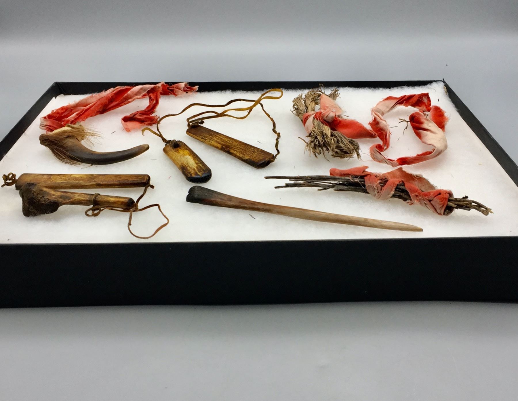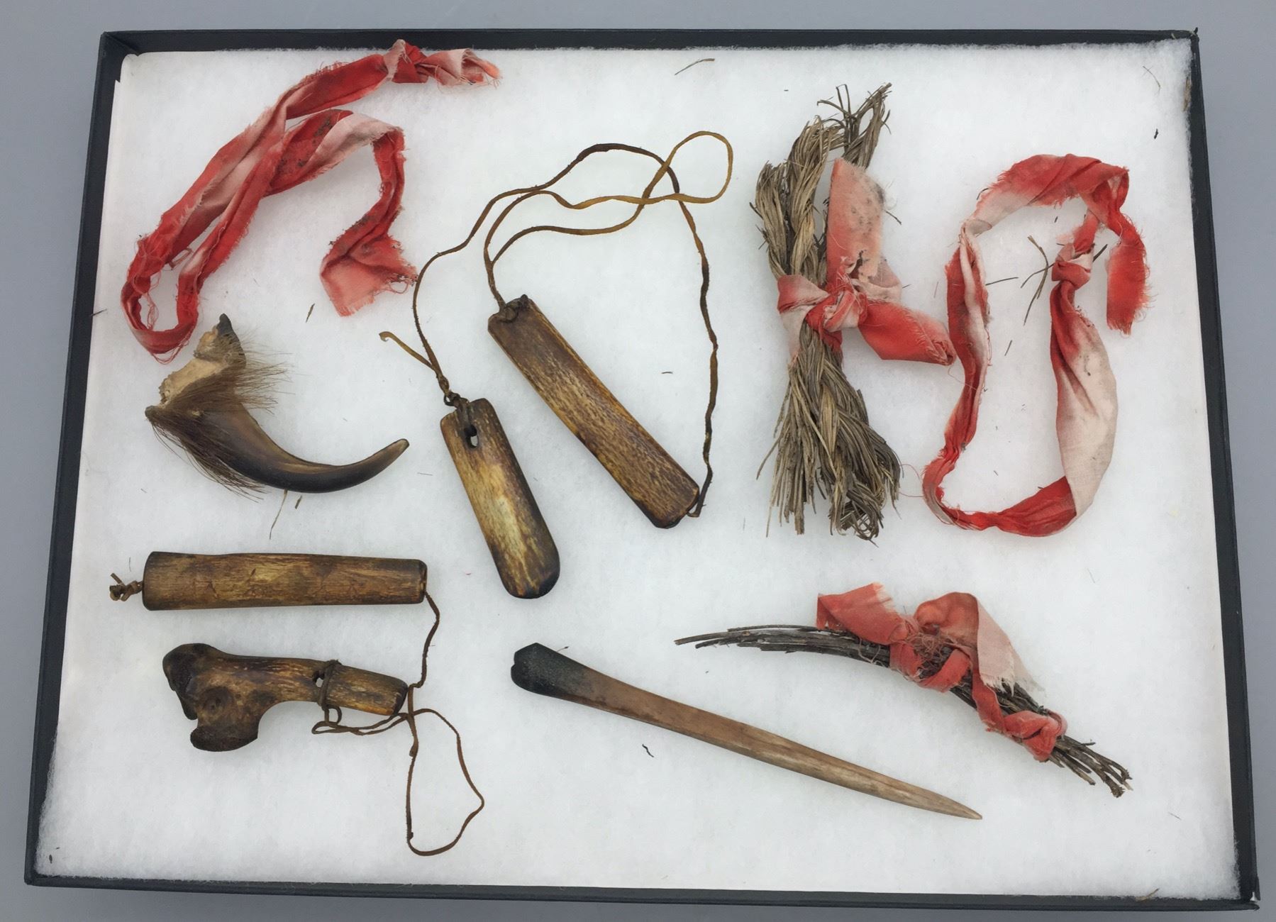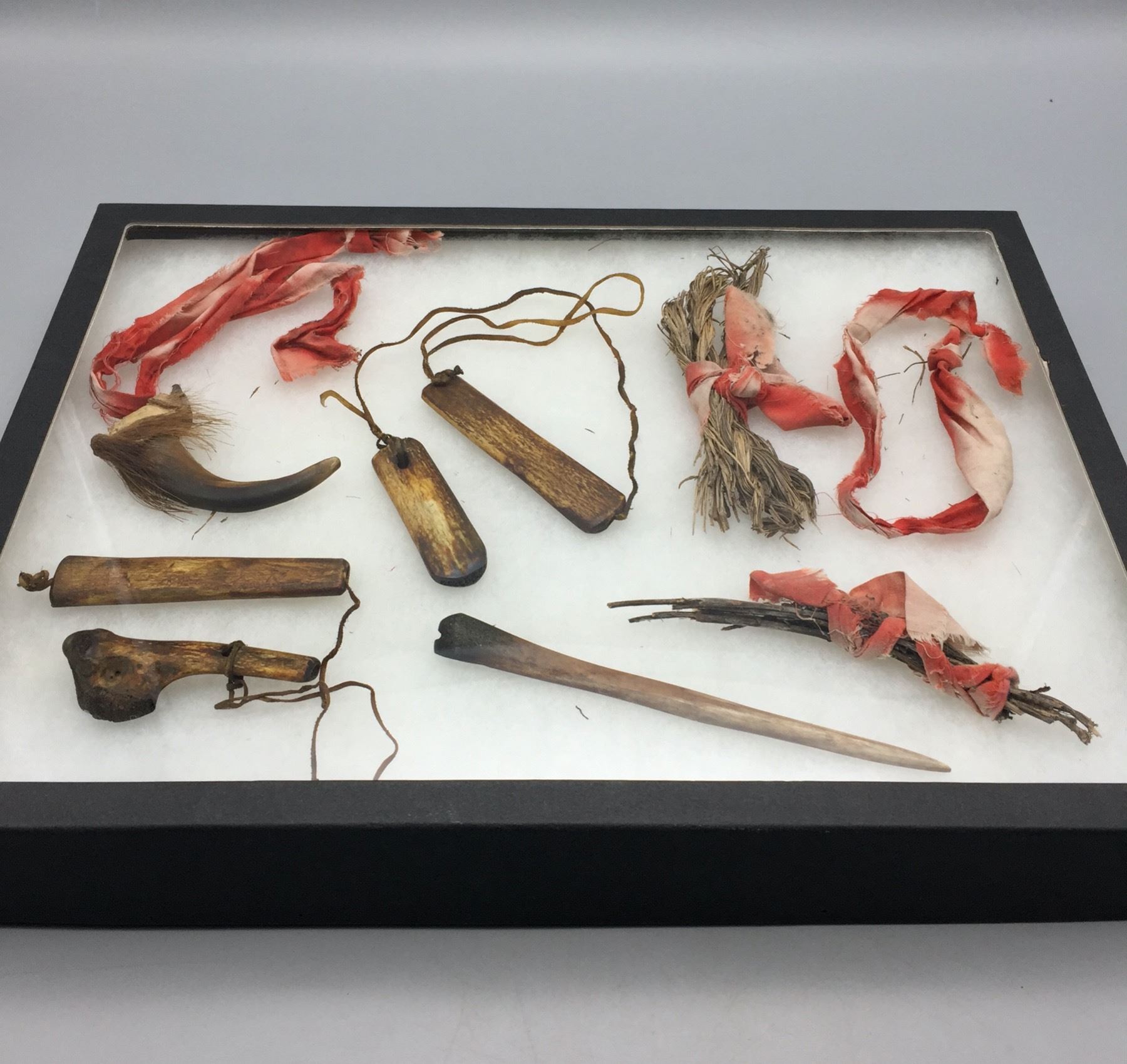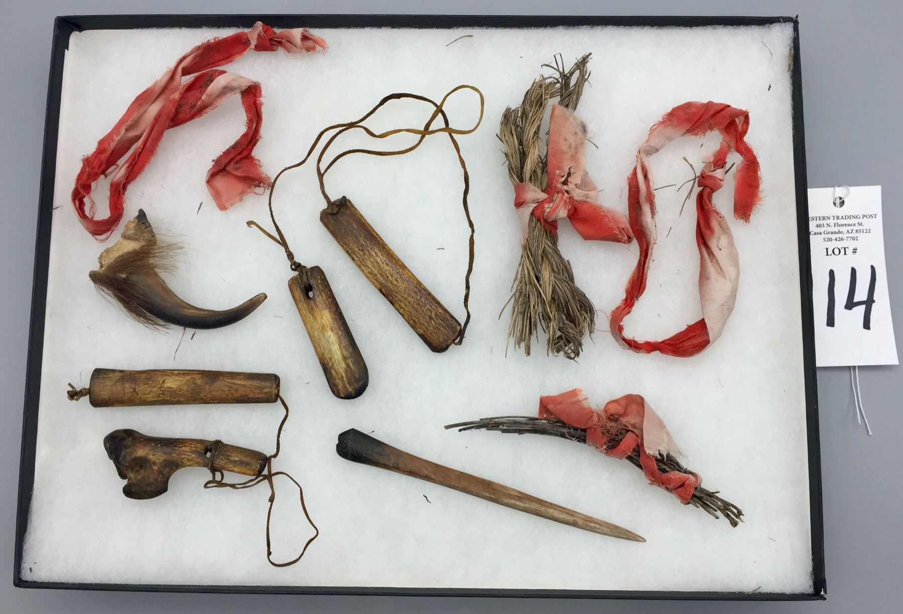 Description: Included for sale in this lot is a shadowbox display of different Native American artifacts and game pieces. Take a look! Maker: Unknown. Approx. Age: Antiques. Size: Shadowbox is 16.5” wide x 12.25” long. Condition: As found. Please look closely at the pictures - they are an important part of our description. Shipping: There will be a $8 handling / packaging fee for shipping this lot. The actual cost of postage will be added on top of that.