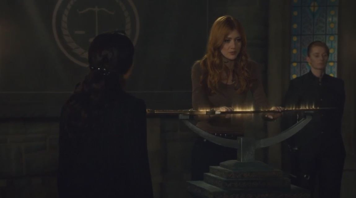 The Sword can also have a dark purpose. By design, the sword's secondary purpose can be activated with angelic energy—by the touch of someone with pure angel blood, like an angel or someone like Clary Fairchild. When wielded by someone with angel blood and struck with a bolt of lightning, the sword would release heavenly light that would destroy all demon-blooded creatures, namely demons and Downworlders, in its path. According to Sister Cleophas, it would be impossible to turn off once activated.