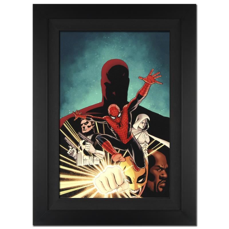 A piece of comic book history, this limited edition, from original art by John Cassaday, depicts the classic character Spider-Man. Starting his work for Marvel in 1997, John Cassaday is best known for his work on Astonishing X-Men with Joss Whedon and Captain America with John Ney Rieber. "Shadowland #1" is an extremely limited edition numbered giclee on canvas by John Cassaday presented by Marvel Comics, hand signed by the Great Stan Lee (1922-2018) and numbered out of only 4! This piece comes custom framed and ready to hang. Includes Certificate of Authenticity! Measures approx. 29" x 40" (with frame); 22" x 33" (image).