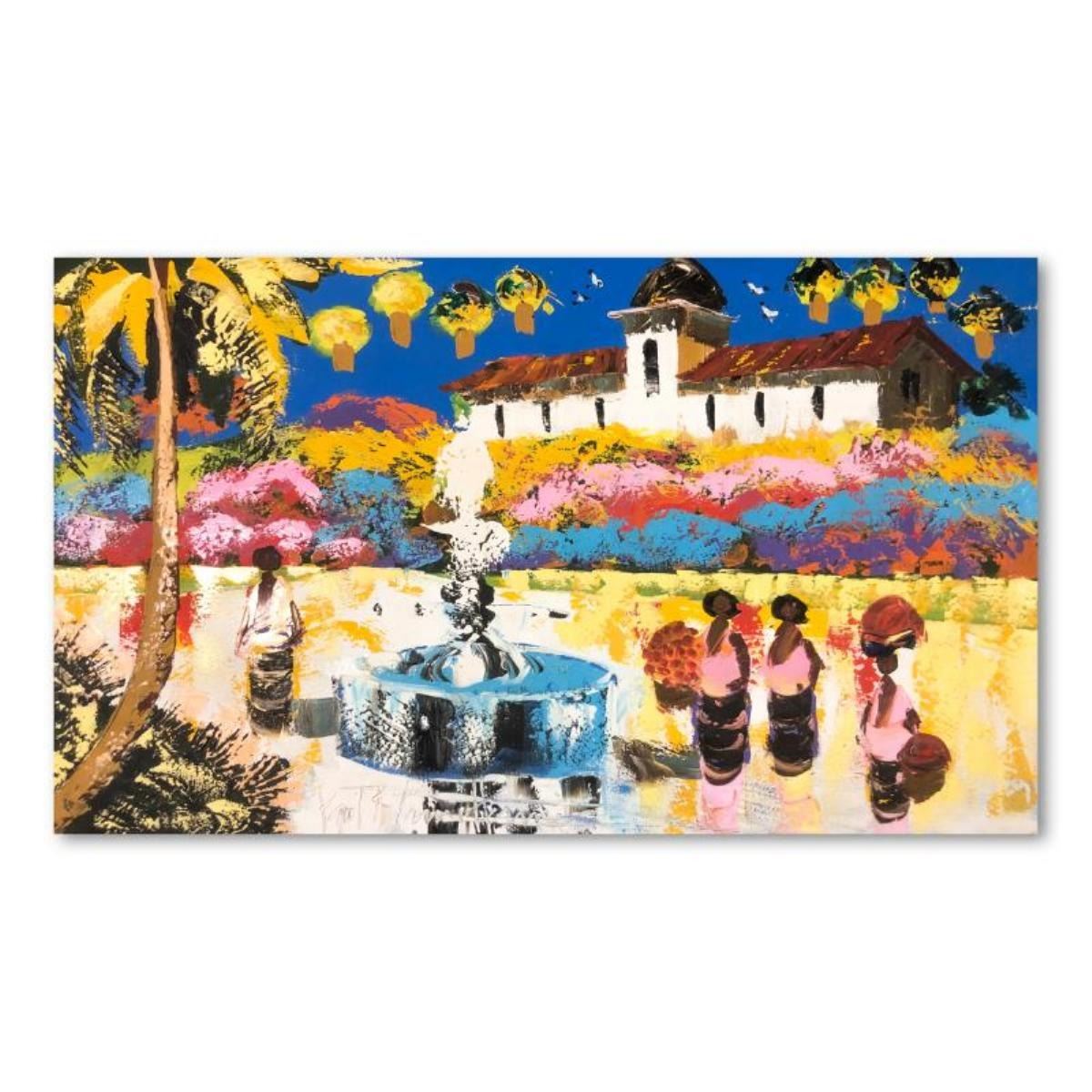 "Shadows of Sonora" is an original oil painting on stretched canvas by Paul Blaine Henrie (1932-1999). The piece is hand signed by the artist and comes with a letter of authenticity. Please note that due to the age of this piece and the way it was stored, there are minor sings of wear, particularly on the corners and edges. Measures approximately. 40" x 60" (image).
