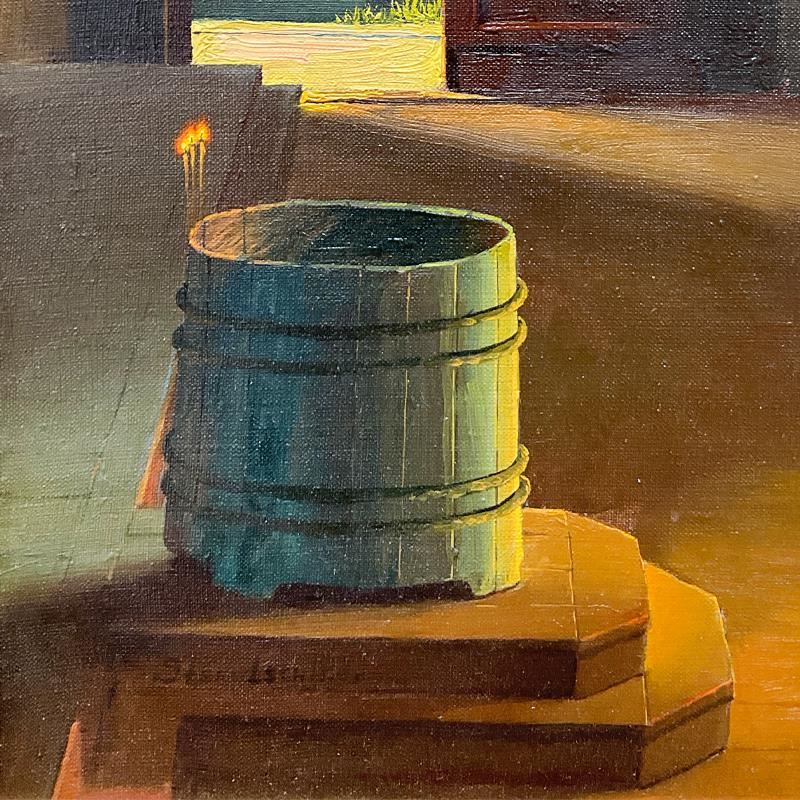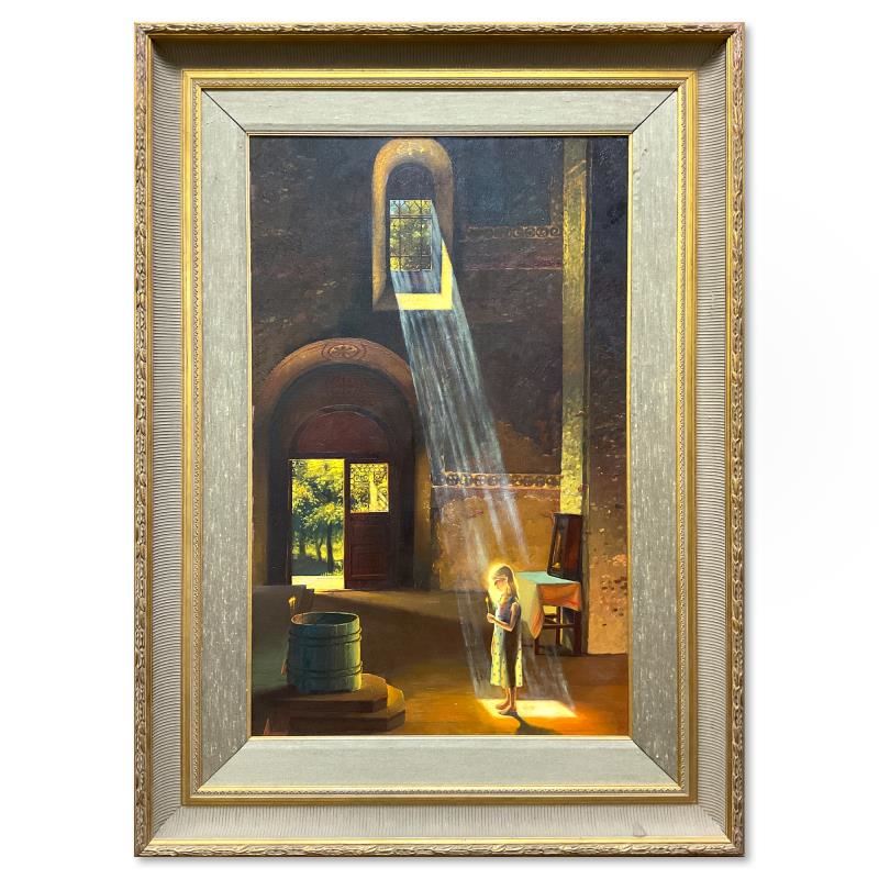 "Shaft of Light" is an original oil painting on canvas by Anton Stekolschikov, hand signed by the artist. This piece comes framed. Includes Letter of Authenticity. Measures approx. 52" x 36.5" (frame), 38" x 23.5" (image). There is some wear on the frame.