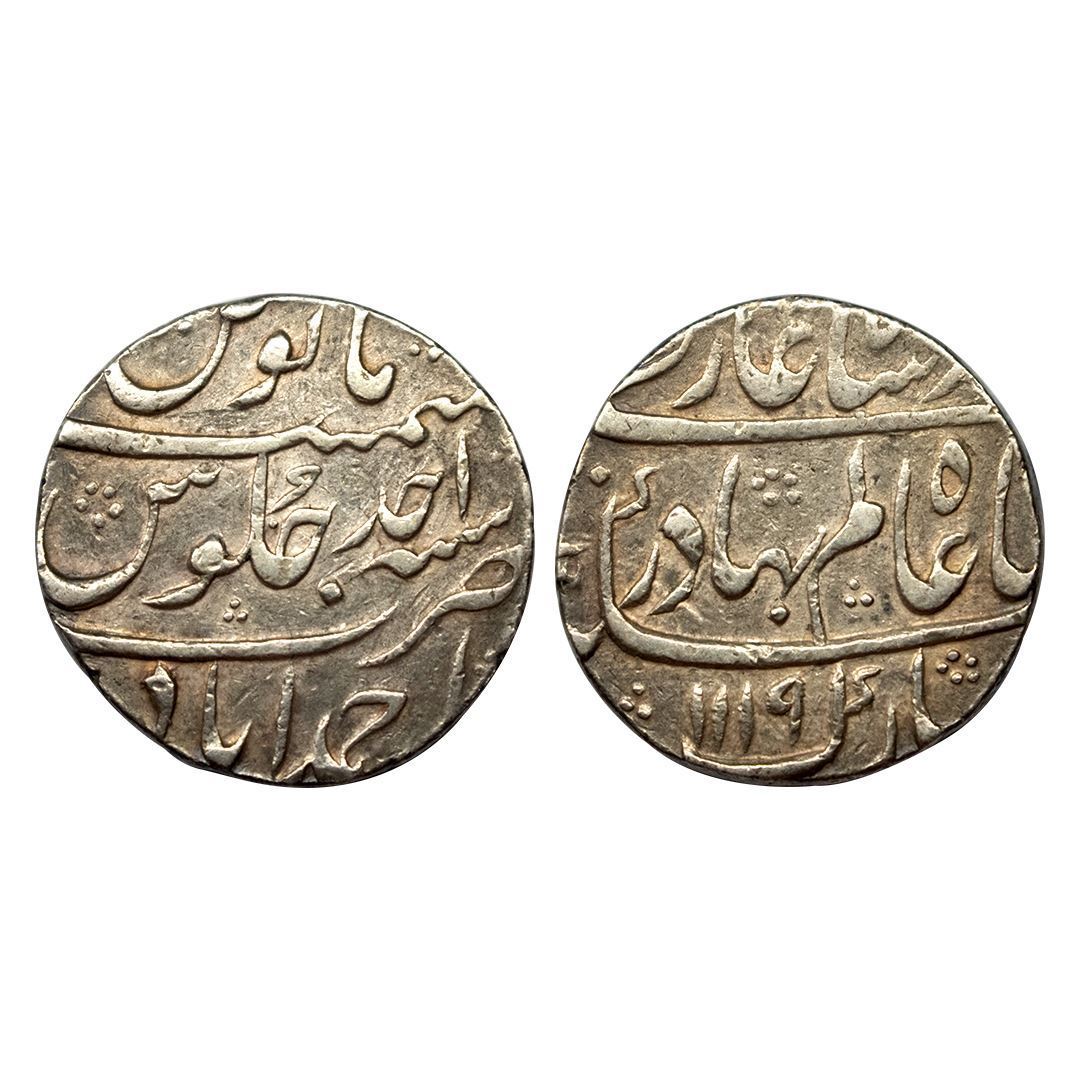 Shah Alam I, Rupee, Ahmedabad Mint, complete Mint name in the bottom line on rev, AH 1119, RY Ahad. No Test Marks, Very Fine+.