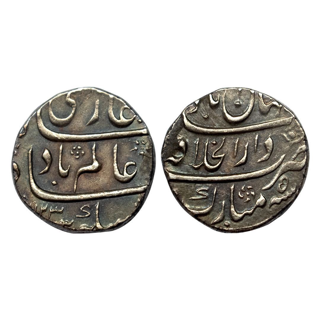 Shah Alam I, Rupee, Shahjahanad Dar ul Khilafat Mint, Ahad Mubarak type, complete Mint name in the t