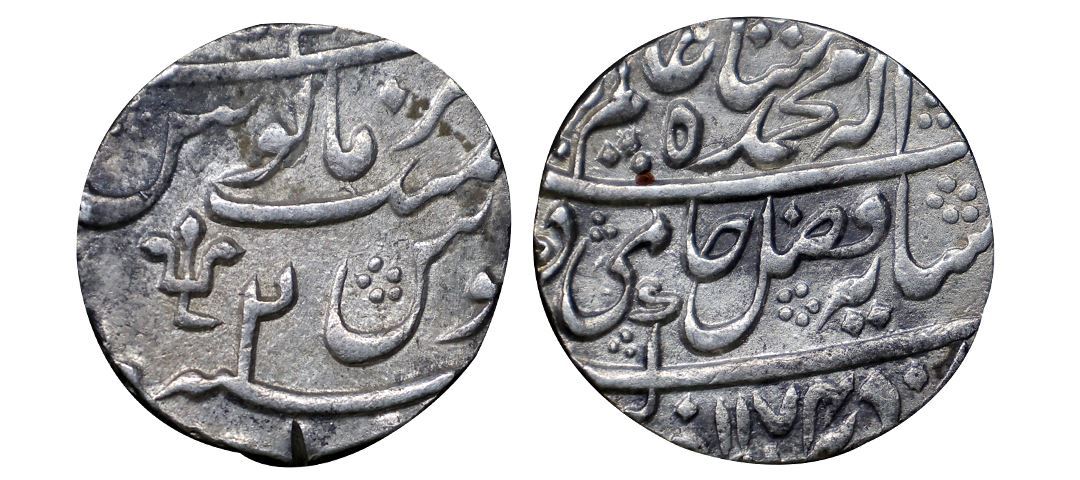 Shah Alam II, Silver Rupee, 11.51g, Azimabad Mint, trident as mint mark on rev, AH 1174/2 (KM 592).