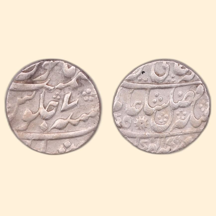 East India Company, Bengal Presidency, Murshidabad Mint, Silver Rupee, 11.50gms, AH 1179, RY 7, in the name of Shah Alam II, with sun symbol on obv. ( Stevens # 2.71).