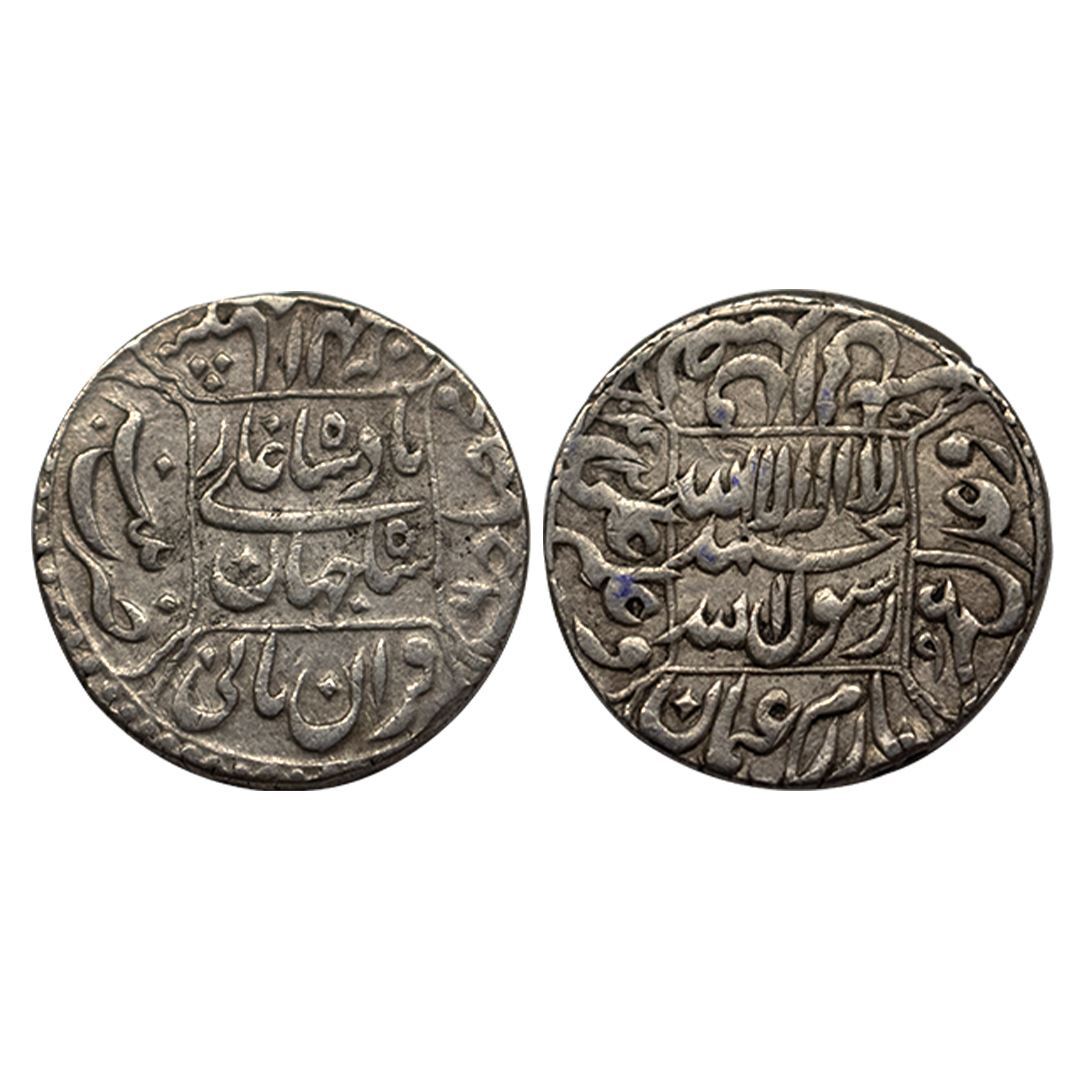 Shah Jahan (1628-1658 AD), silver rupee, Patna mint (fully visible) in left quadrant, 'square areas'