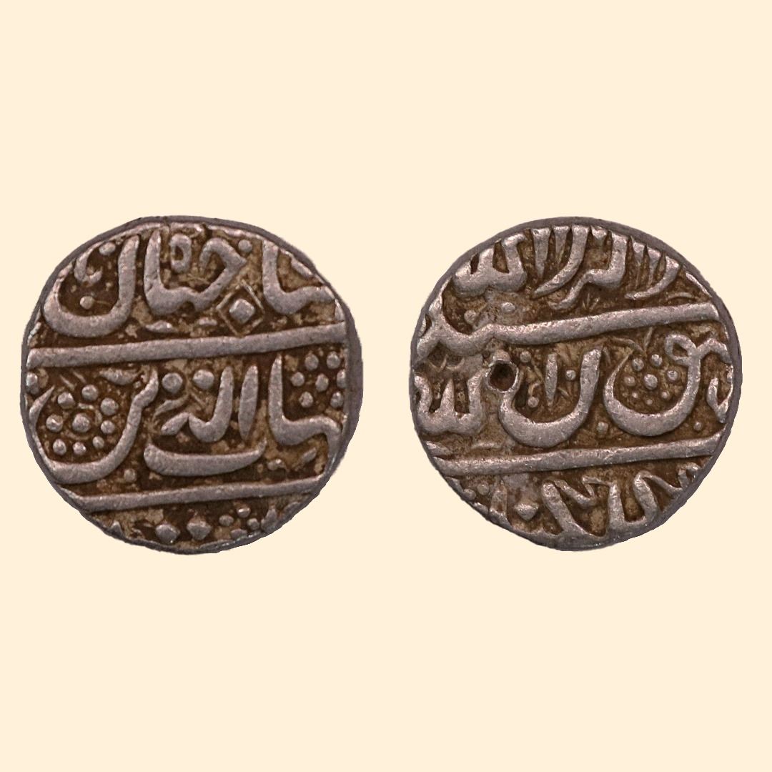 Shah Jahan I (AH 1037-1068 / 1628-1658 AD), Silver Rupee, 11.48gms, Golkonda Mint, crude calligraphy on both sides. (KM # 223.1). very fine+, Scarce