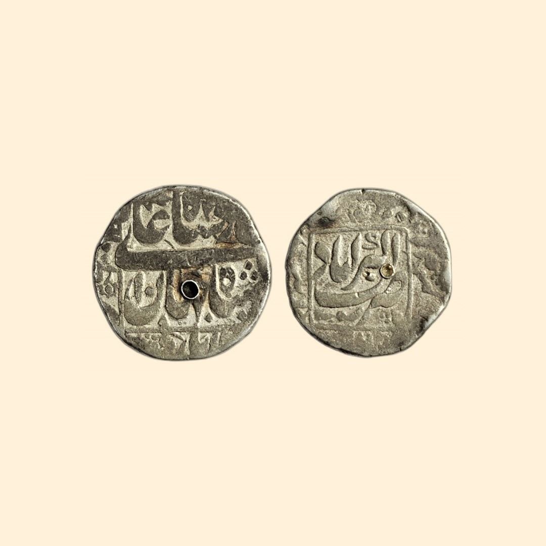 Shah Jahan I (AH 1037-1068 / 1628-1658 AD), Silver Rupee, Multan mint mule rupee counterfeit with the akbarabad mint die of the Aurangzeb. Fine, Very Rare.