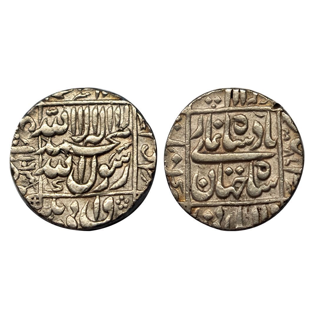 Shah Jahan, Khambhayat Mint, Silver, Error Rupee, Square-area type with mint name in the left margin