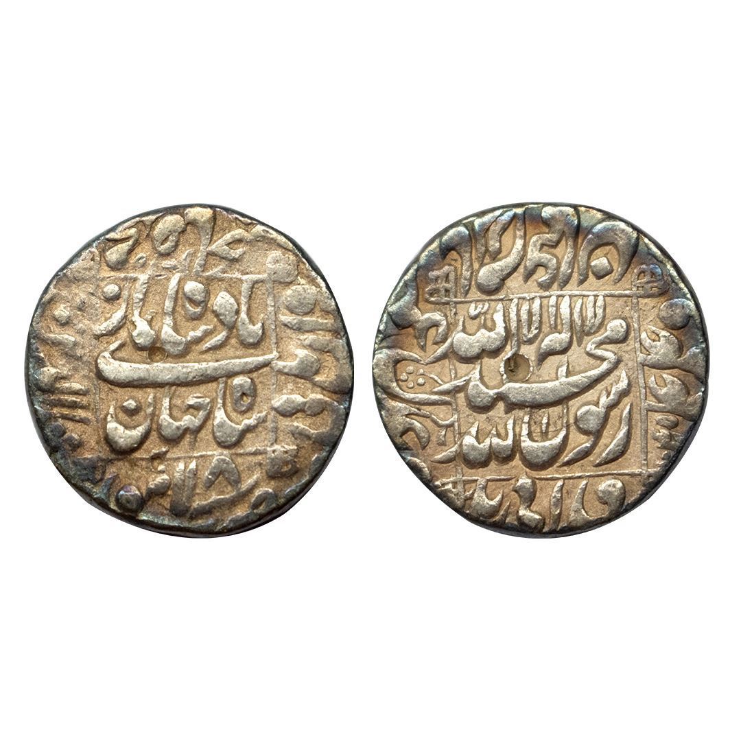 Shah Jahan, Lahore Mint, Silver, Rupee, Square-area type with complete mint name in the bottom margin on rev, AH 1045, RY 8. Centrally struck, Test marks, Very Fine+.