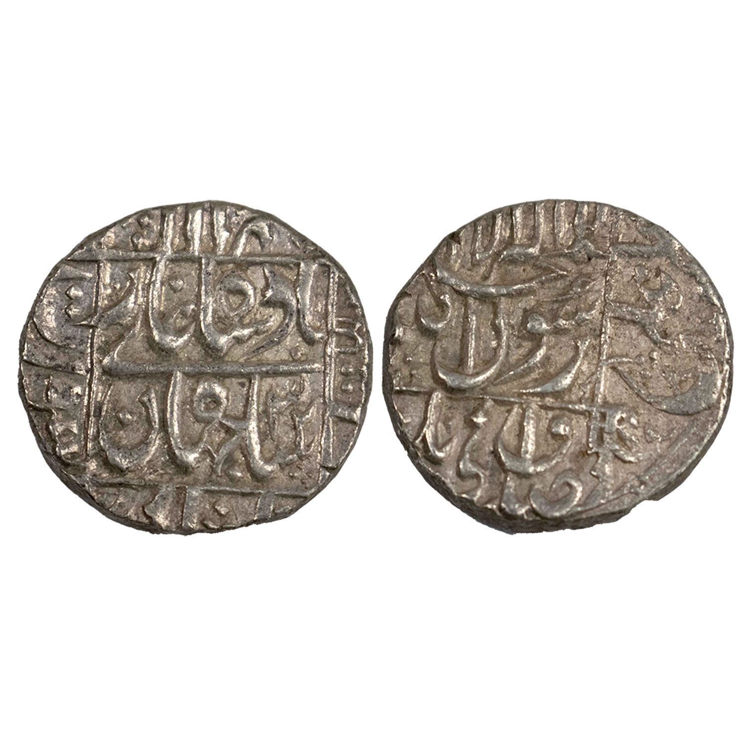 Shah Jahan, Silver Rupee, Surat Mint, legend in four lines on both sides (KM 222.13).