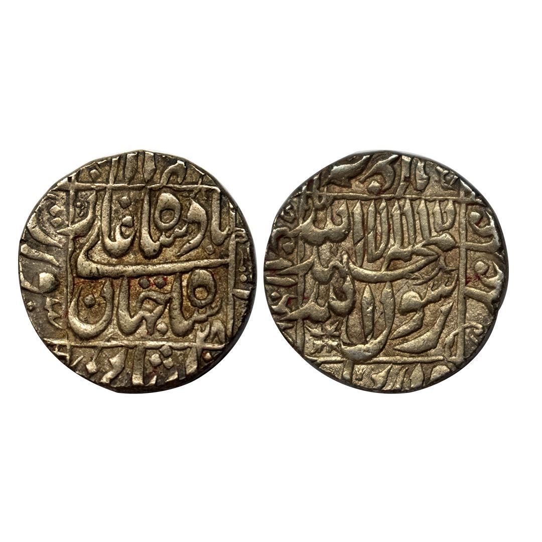 Shah Jahan, Surat Mint, Silver, Rupee, Square-area type with complete mint name in the left margin o