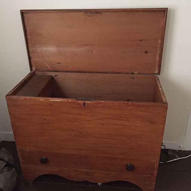 Shaker Blanket chest, all original with original till, retains it's original grained painted finish, one drawer. Measures approx. 19" x 42" x 33" high.