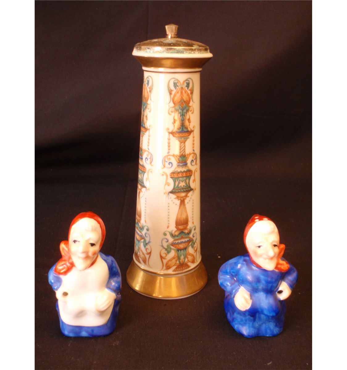 Two, Salt and pepper shakers shaped like witches + Lennox China Salt Shaker hand decorated with 24K gold! There is corrosion on some of the gold areas. Lennox Measures: 7 1/2" Tall. Shipping on this lot: $10.00. Additional Shipping Charges for Lots sent outside of the U.S