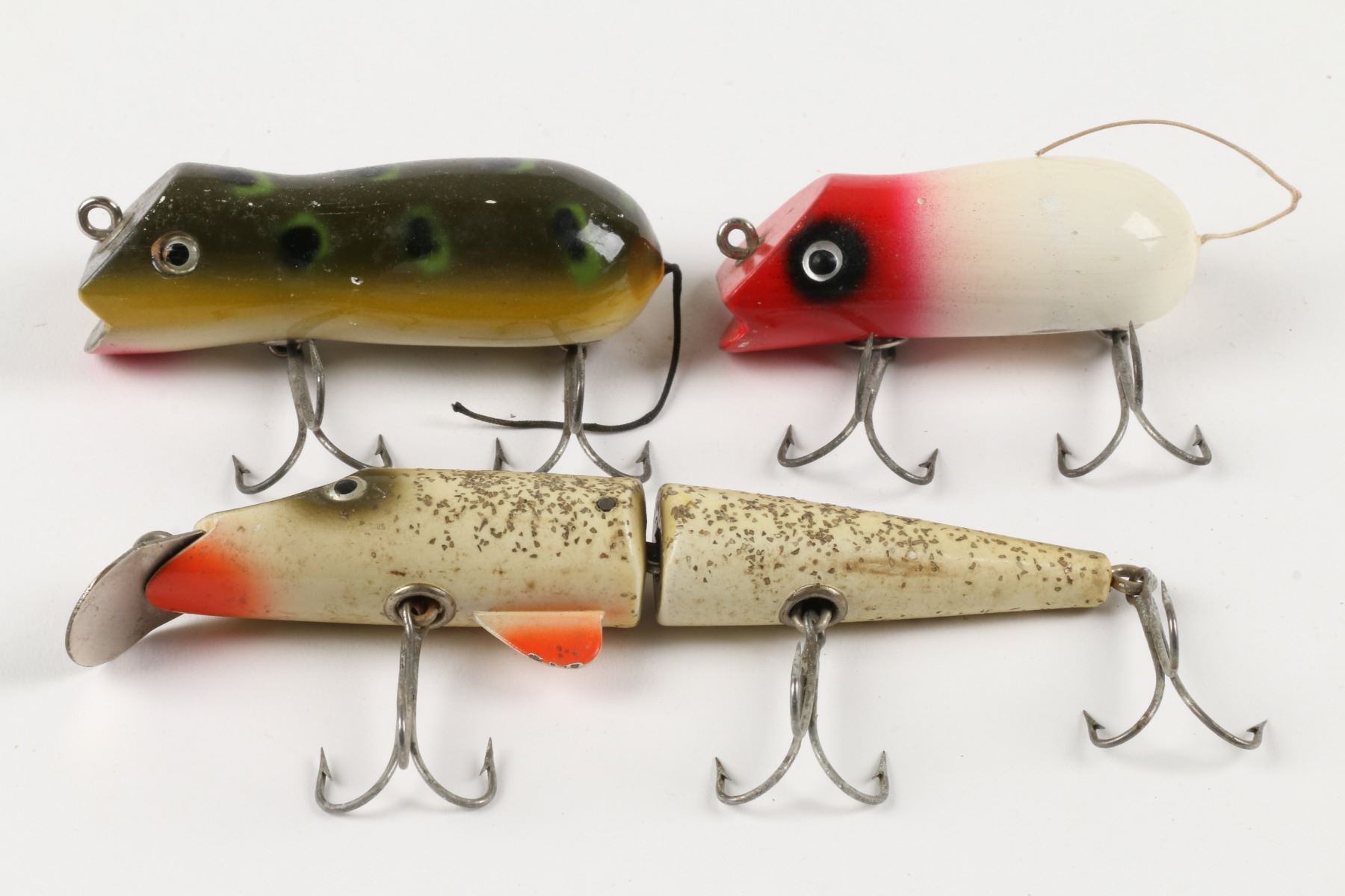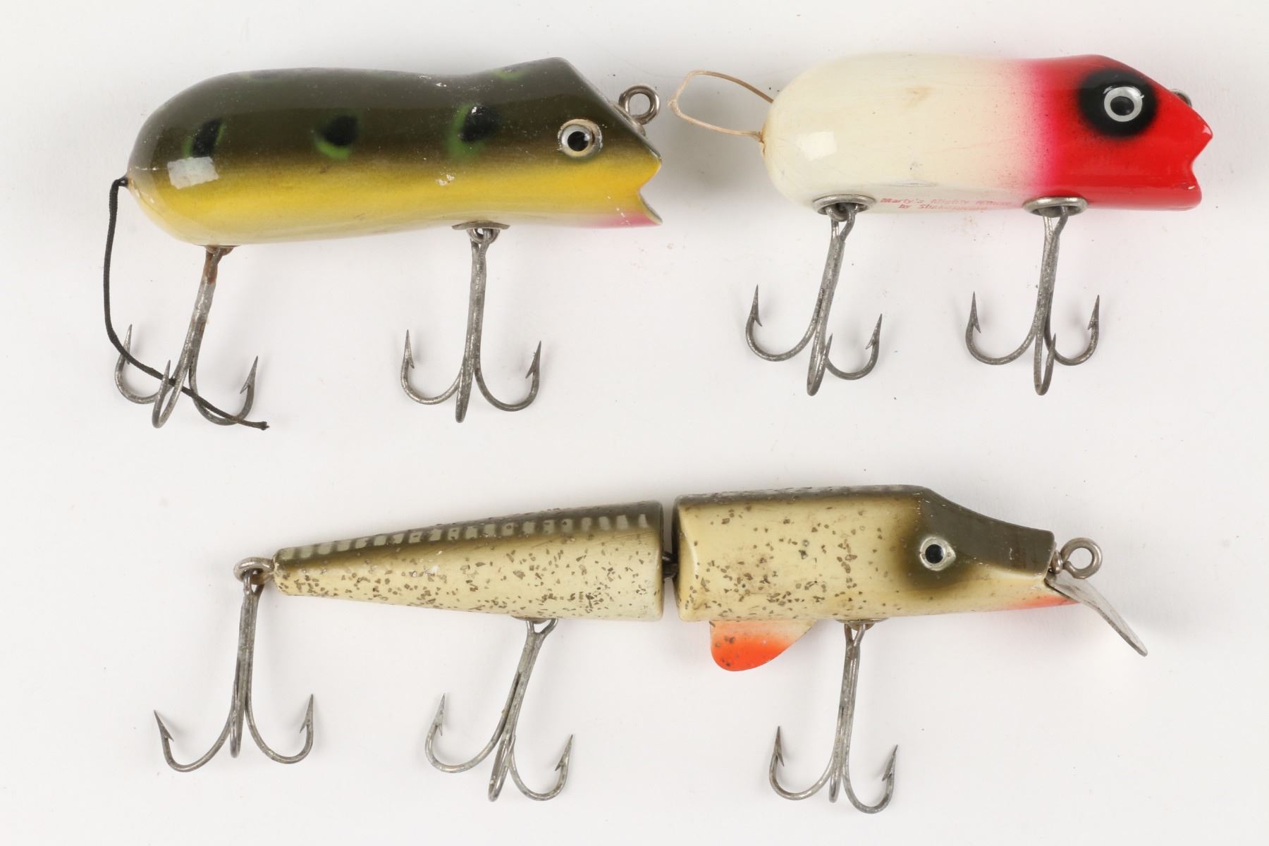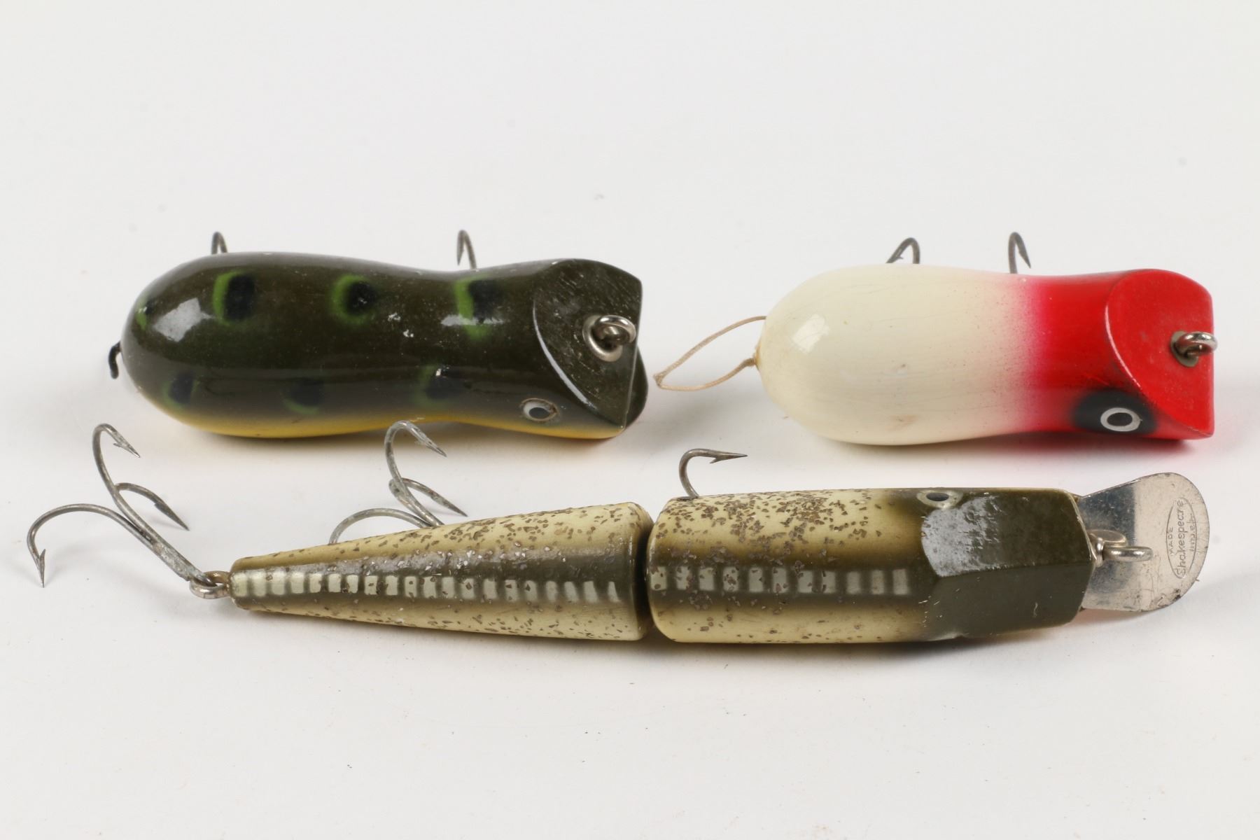 Shakespeasre Fishing Tackle, United States. Material: Wood. Quantity: 3. Grade: VG. 2.5" - 5". Est. $75-100.