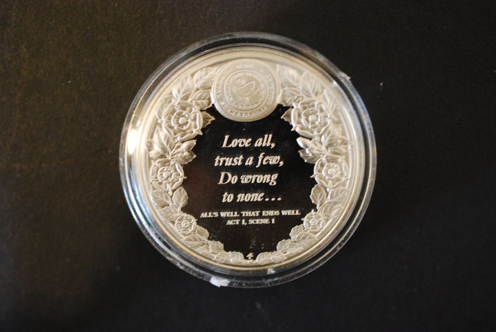 Shakespeare Tragedy Sterling Round; All's Well That Ends Well; .925 Silver .530 Oz.; EST. $20-30