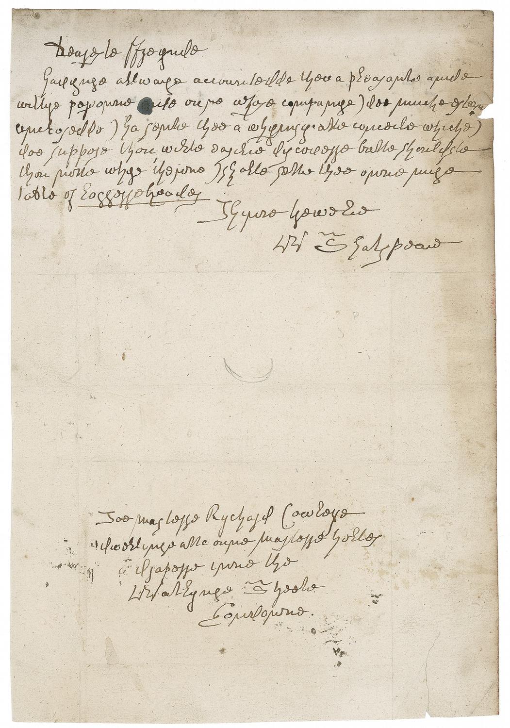 English forger (1775-1835) of would-be Shakespearean documents and plays. He is less well-known as a poet, writer of gothic novels and histories. A famous Shakespearean forgery by Ireland, an ‘ALS’ in Old English, in which The Bard purports to be sending a portrait. The letter, signed “Wm. Shakespeare,” reads: “Havyng alwaye accountedde the a Pleasaynte ande wittye Personne ande oune whose Companye I doe much esteeme I have sente thee inclosedde a whymsycalle conceyte whyche doe suppose thou wilt easylye dicoverre but shouldst thou notte whye thenne I shalle sette thee onne mye table offe loggerre heades.” Written at the bottom of the page is: “March nynthe Toe Masterre Richard Cowleye, dwellynge atte oune Masterre Hollis a draperre inne, the Wattlynge Streete, lLundoune.” In very good condition, with several intersecting folds, scattered toning and soiling (heaviest along right edge), small tear to lower edge, and a chip to right edge.
