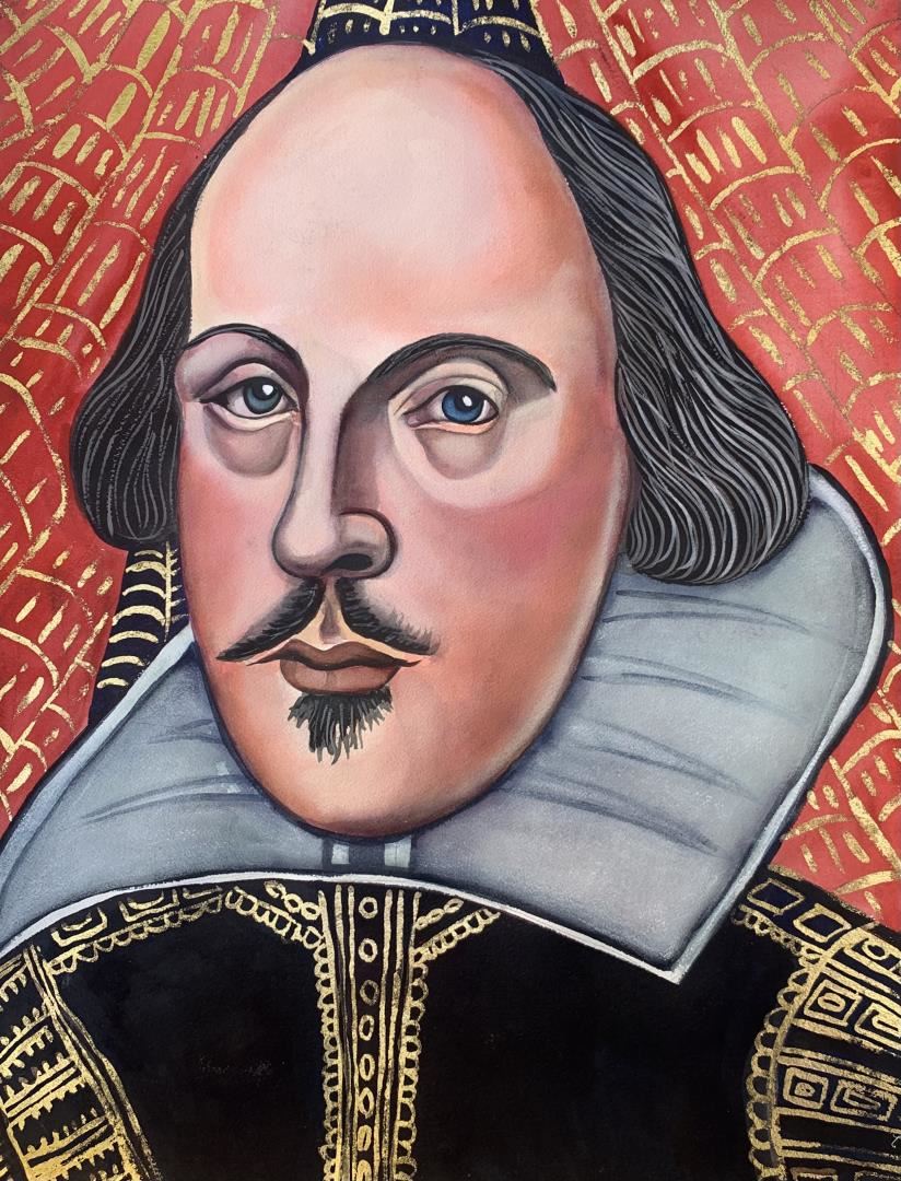 A pastel & watercolor portrait of the Bard, William Shakespeare 24x18" on deckled fine art paper, by Anonymous
