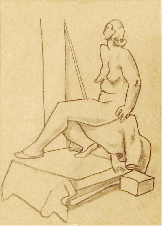 Shalom Sebba, German, Israeli Art, 1897 - 1975, Nude in the Studio, Pencil, 32x23cm, , , , The Collection of the Ron Family, Givataim., ,