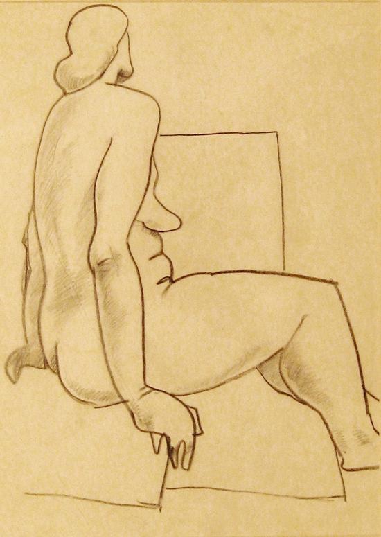 Shalom Sebba, German, Israeli Art, 1897 - 1975, Sitting Nude, Pencil, 32x23cm, , , , The Ron Family collection, Givataim., ,