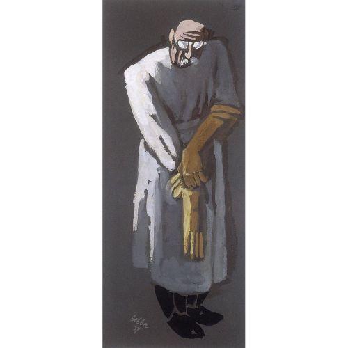 <B>Shalom Sebba</B><BR>Israeli painting<BR>1897 - 1975<BR>The Surgeon<BR>1937<BR>Tempera on paper<BR>43x18cm<BR>Signed and dated.<BR>Karlheinz Gabler. Sebba. Maler und Werkmann. Kassel<BR>1981. p. 184. no. 67a. illustrated.
