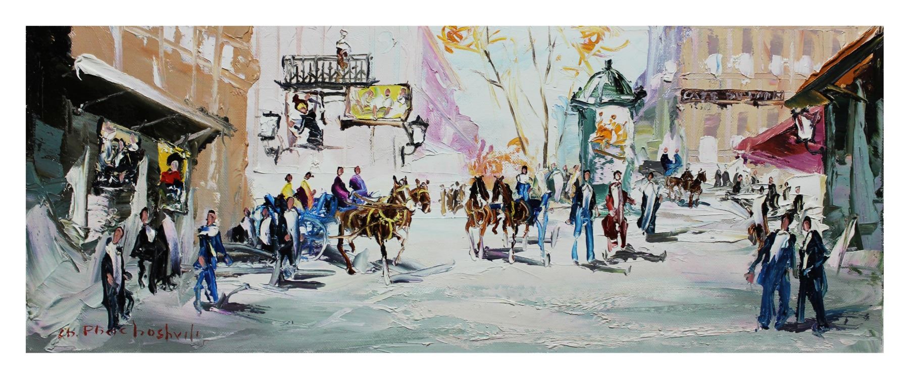 Artist: Shalva Phachoshvili. Medium: Original Oil on Canvas. Title: After The Snow. Size (Unframed): 8" x 20". Certificate of Authenticity: From the publisher. Reference# 10599.