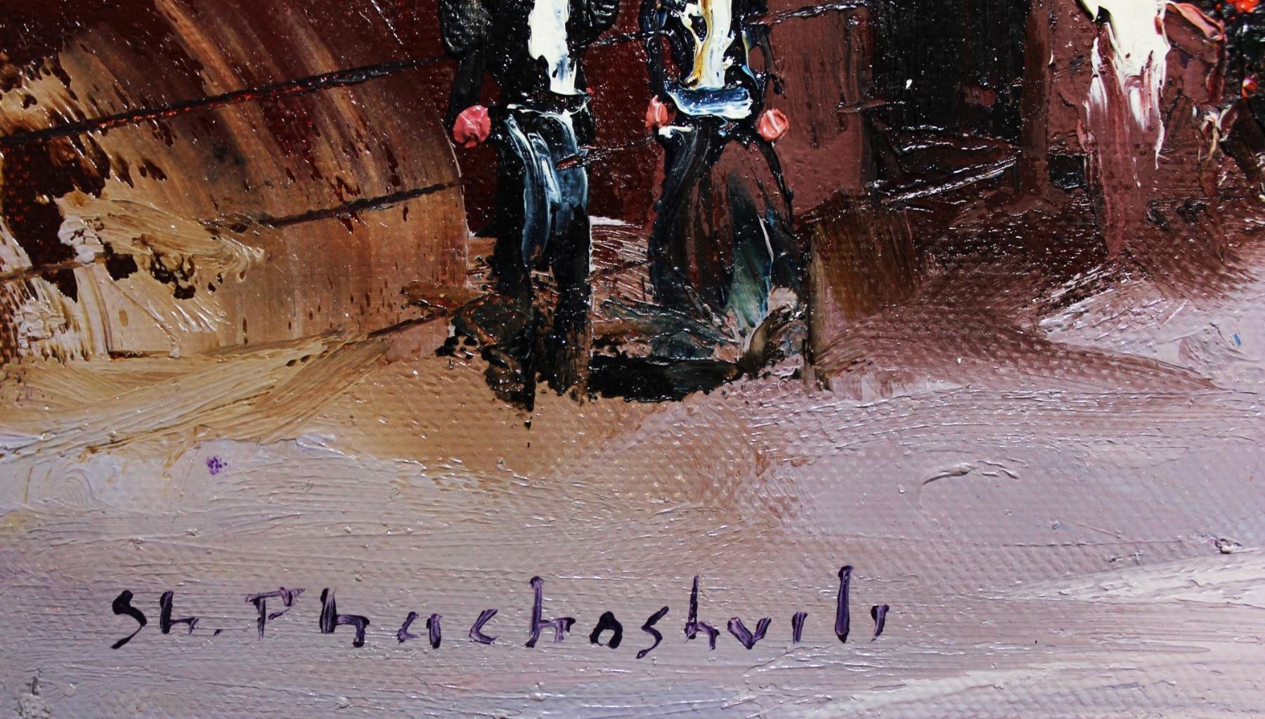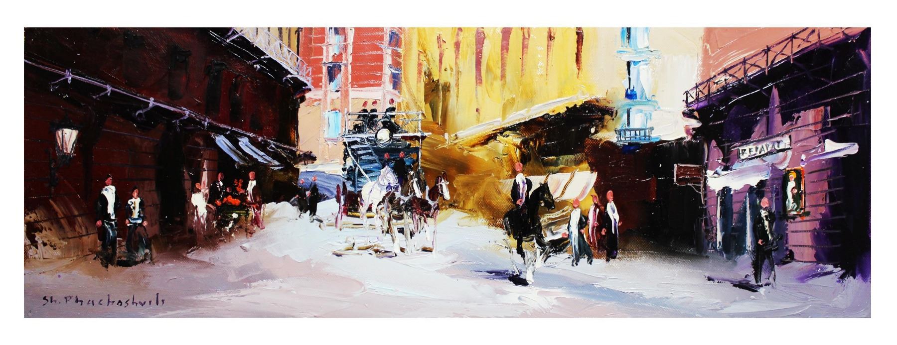 Artist: Shalva Phachoshvili. Medium: Original Oil on Canvas. Title: Day Life. Size (Unframed): 8" x 20". Certificate of Authenticity: From the publisher. Reference# 10795.