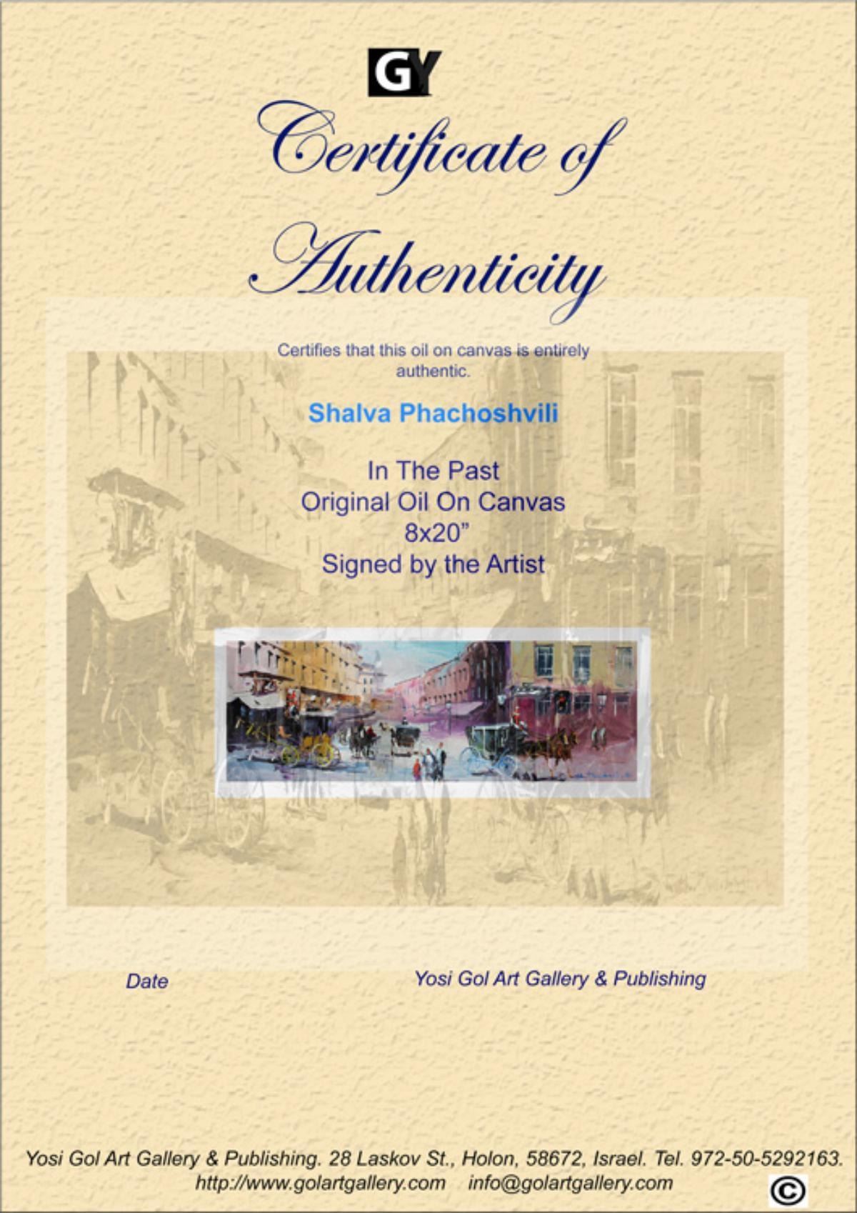 Artist: Shalva Phachoshvili. Medium: Original Oil on Canvas. Title: In The Past. Size (Unframed): 8" x 20". Certificate of Authenticity: From the publisher. Reference# 10597.