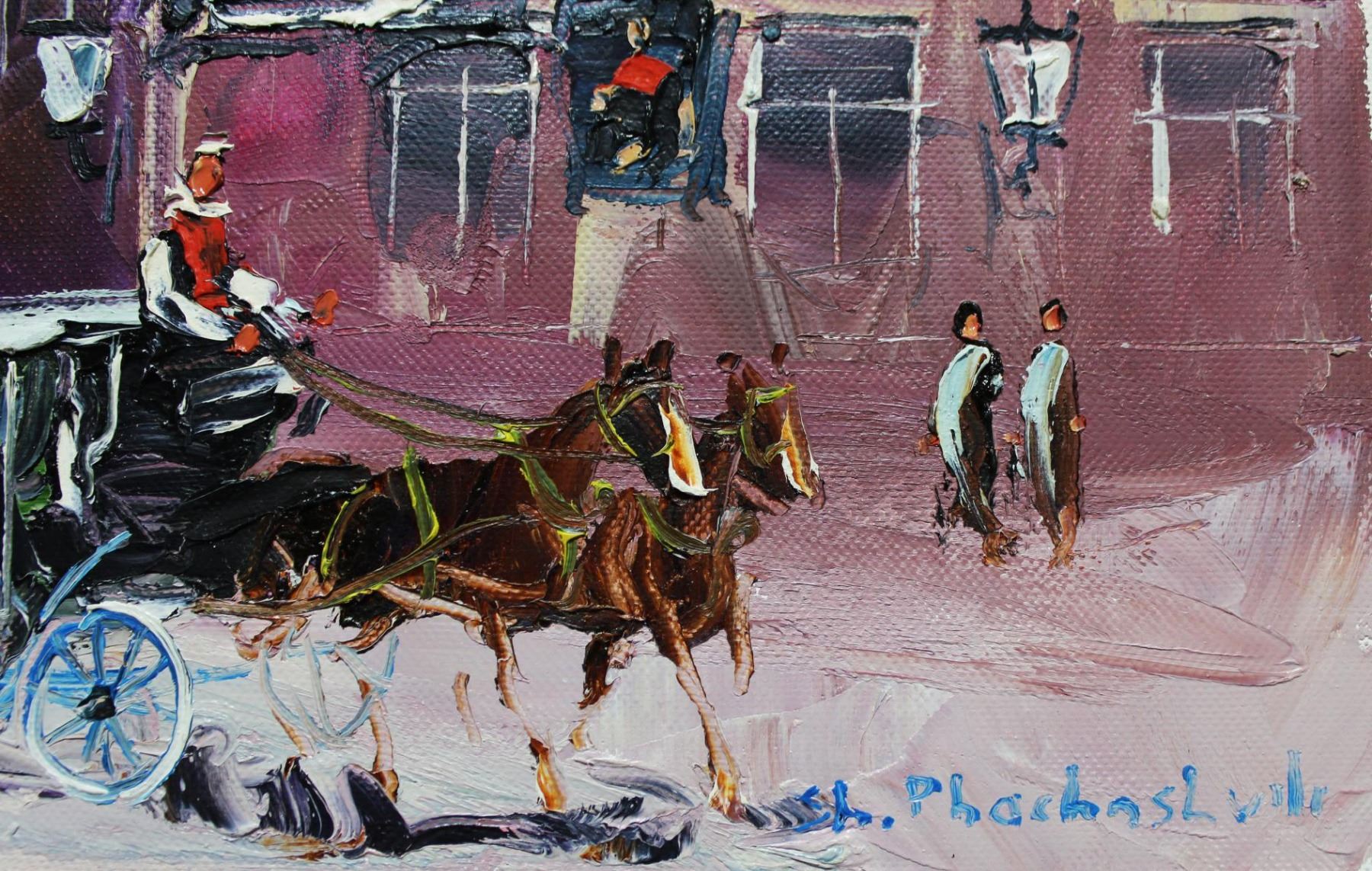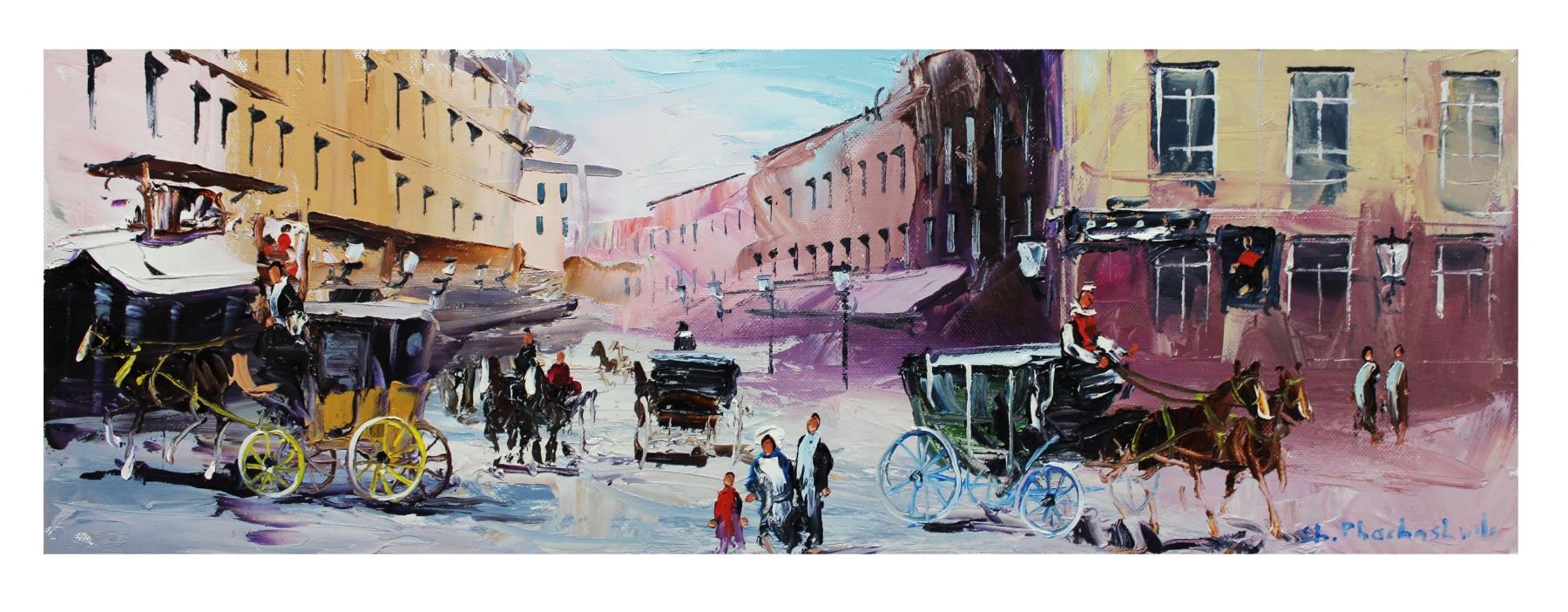 Artist: Shalva Phachoshvili. Medium: Original Oil on Canvas. Title: In The Past. Size (Unframed): 8" x 20". Certificate of Authenticity: From the publisher. Reference# 10597.