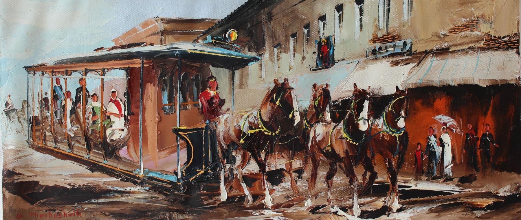 Artist: Shalva Phachoshvili. Medium: Original Oil on Canvas. Title: Long Journey Home. Size (Unframed): 12" x 26". Certificate of Authenticity: From the publisher. Reference# 10490.
