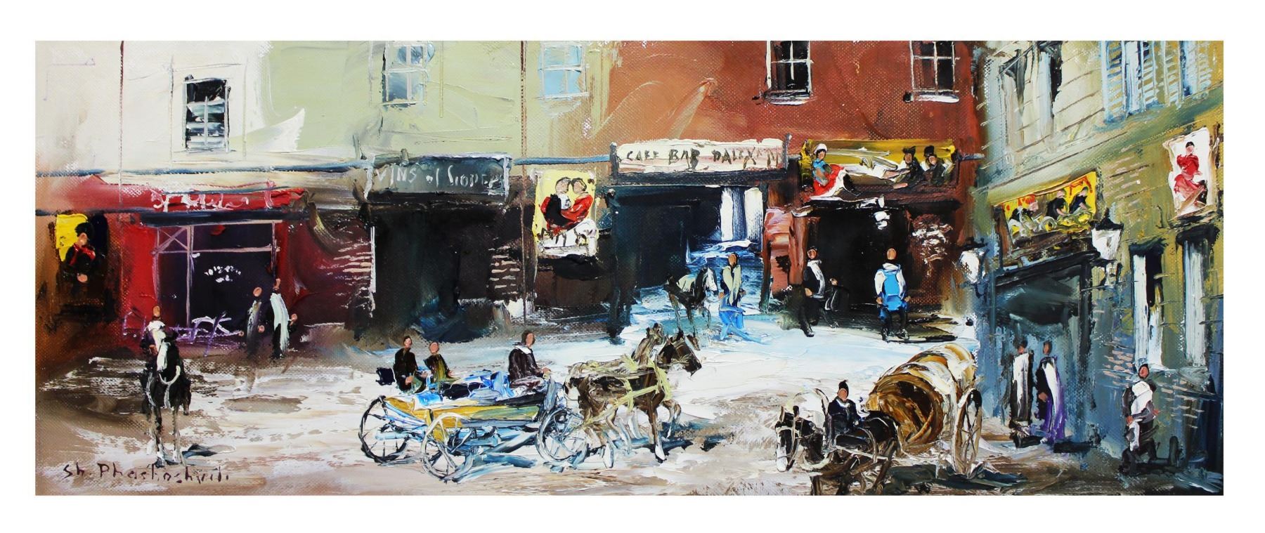 Artist: Shalva Phachoshvili. Medium: Original Oil on Canvas. Title: Old Street. Size (Unframed): 8" x 20". Certificate of Authenticity: From the publisher. Reference# 10596.