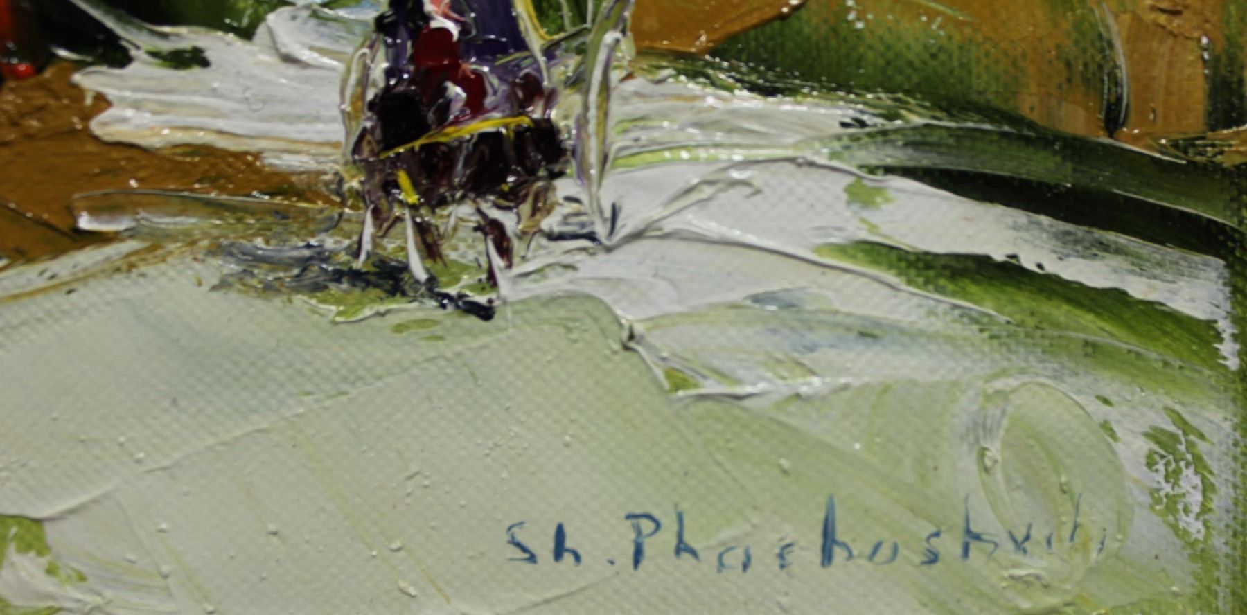 Artist: Shalva Phachoshvili. Medium: Original Oil on Canvas. Title: Parkside Village. Size (Unframed): 6" x 11". Certificate of Authenticity: From the publisher. Reference# 11045.