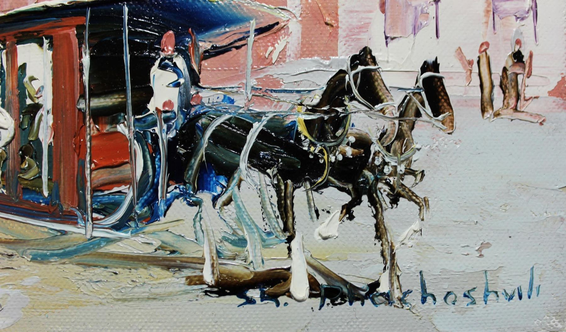 Artist: Shalva Phachoshvili. Medium: Original Oil on Canvas. Title: Street View. Size (Unframed): 8" x 20". Certificate of Authenticity: From the publisher. Reference# 10794.