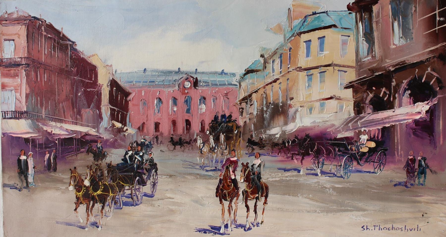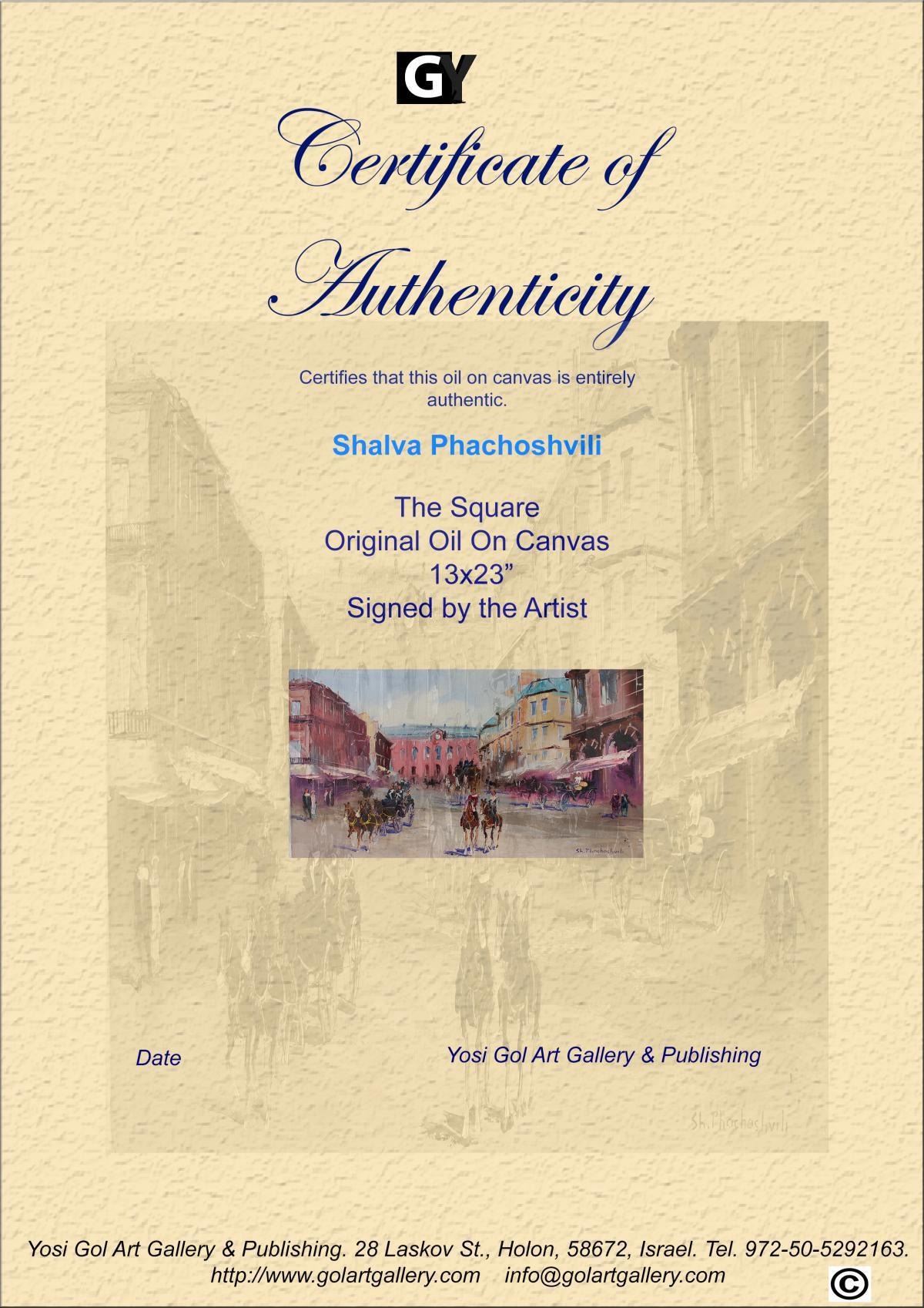 Artist: Shalva Phachoshvili. Medium: Original Oil on Canvas. Title: The Square. Size (Unframed): 13" x 23". Certificate of Authenticity: From the publisher. Reference# 10493.