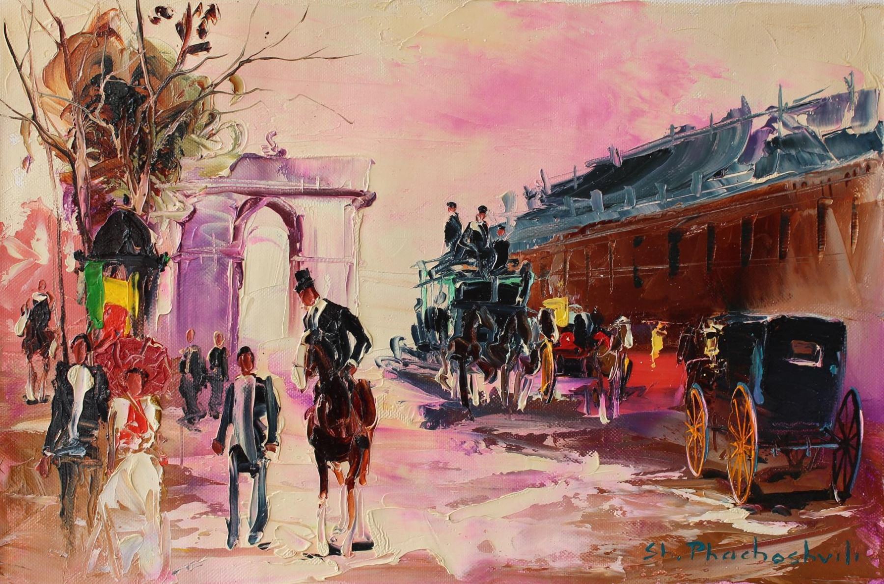 Artist: Shalva Phachoshvili. Medium: Original Oil on Canvas. Title: Train Station. Size (Unframed): 10" x 15". Certificate of Authenticity: From the publisher. Reference# 10346.