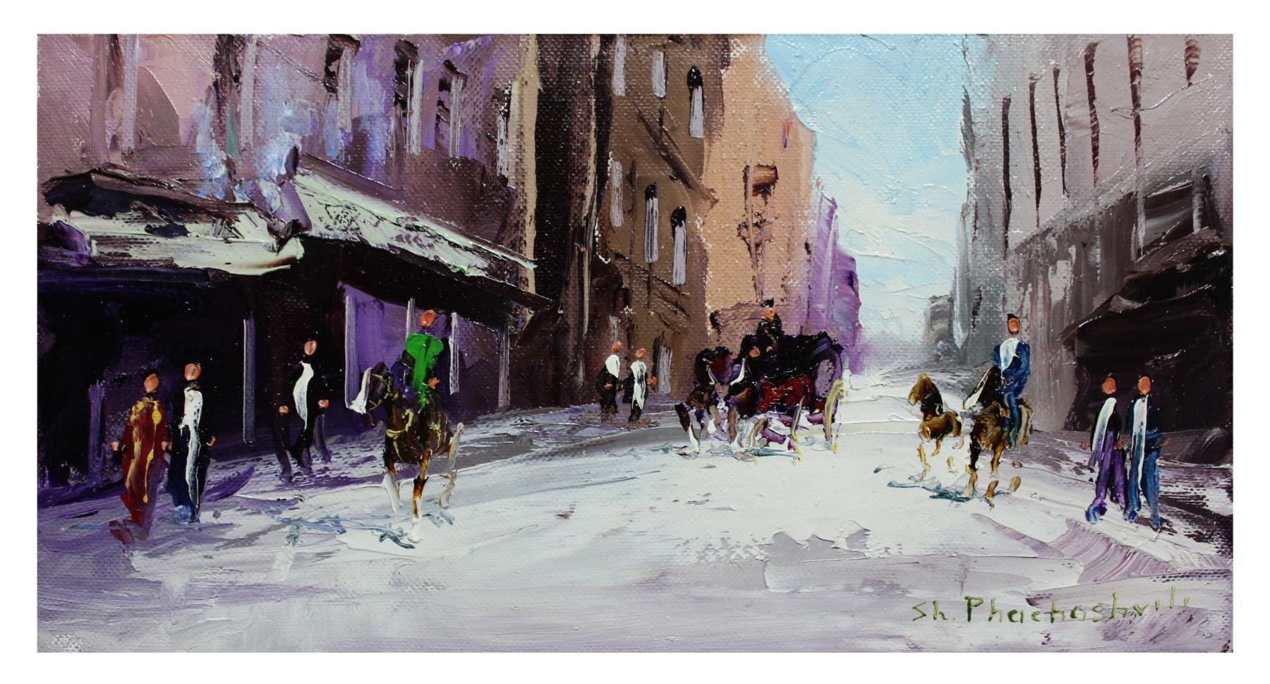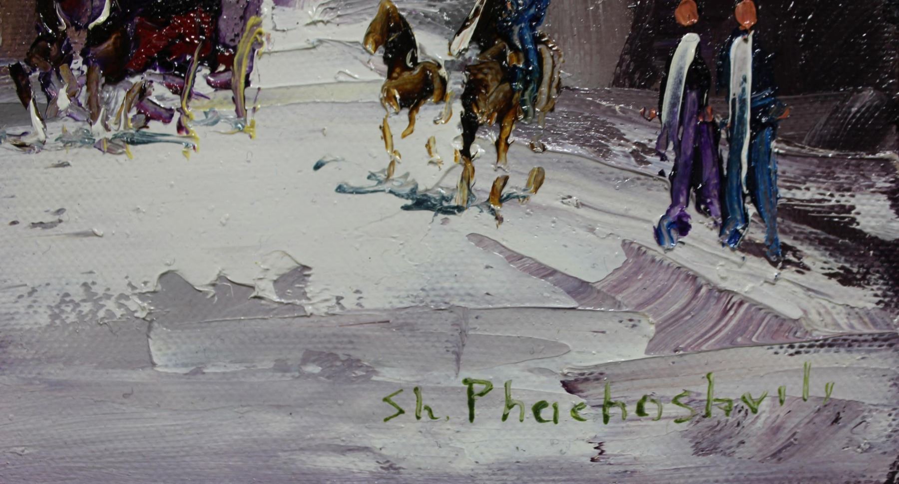 Artist: Shalva Phachoshvili. Medium: Original Oil on Canvas. Title: Weekend. Size (Unframed): 6" x 11". Certificate of Authenticity: From the publisher. Reference# 11052.