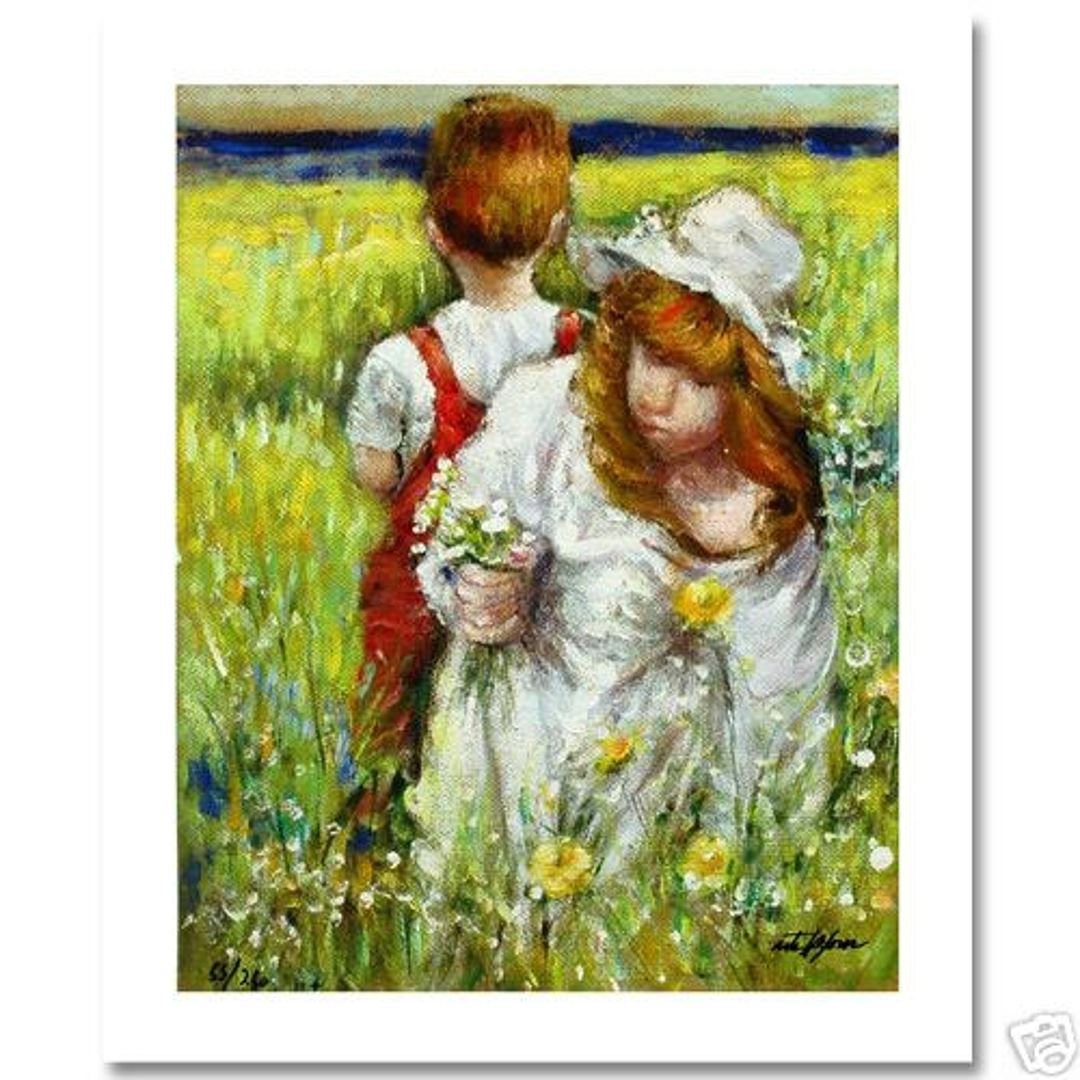 Shana and Noah by Rita Asfour is a Limited Edition Mixed Media on Canvas. Numbered, and Hand Signed with Certificate of Authenticity! Measures appx. 16 x 20 (image).
