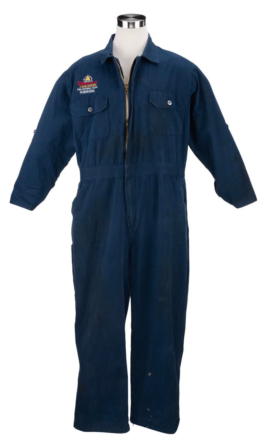 (Shanghai Disneyland, 2016) A Shanghai Disneyland Resort Pre-Opening Team set of Coveralls, with logo embroidered on the right breast. Labeled a size 48, the cotton-poly blend coveralls are in very good condition with light wear from use.