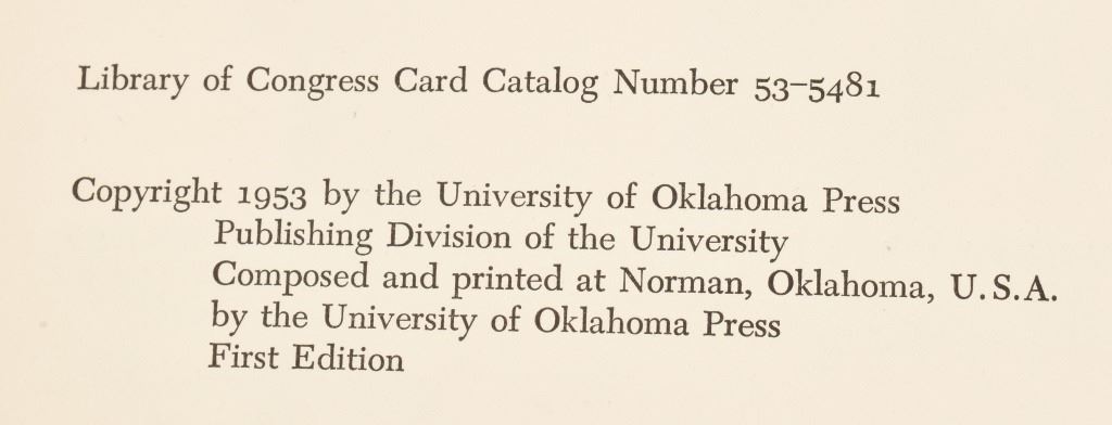 1st Edition 1953 near fine condition. Signed by author Published by University of Oklahoma Press.