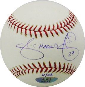 Shannon Stewart was drafted by the Toronto Blue Jays in the 1st round (19th pick) of the 1992 amateur draft and made his debut on September 2, 1995. In every season from 1999 to 2002, Stewart batted .300 or higher and scored over 100 runs. In 2003, Shannon finished 4th in American League MVP voting, a remarkable accomplishment for a lead-off hitter. Shannon Stewart has hand autographed this Official Major League Baseball with Full Name signature. ASI Hologram and Certificate of Authenticity.
