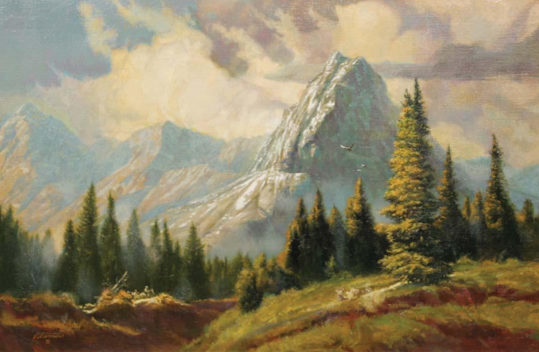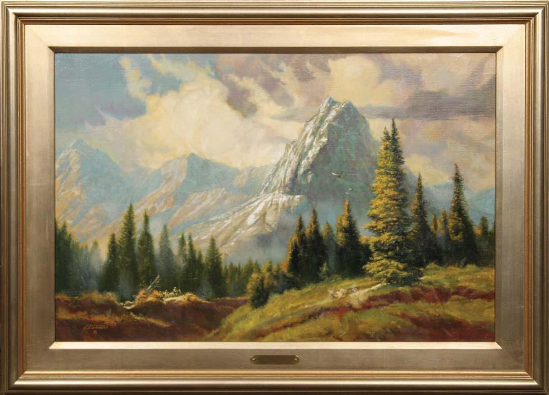 Shannon Stirnweis (b.1931). Mountain's Majesty. 24" x 36" oil on canvas. Signed lower left. (est $3,500-4,500). For condition reports please visit: www.auctioninsantafe.com/cr2011.pdf