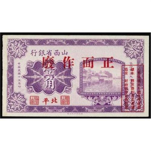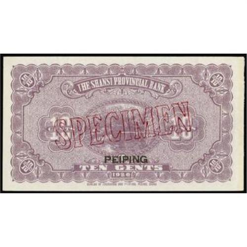 <style type="text/css"> body, td, th { font-family: Arial, Helvetica, sans-serif; font-size: 12px; color: #482424; margin: 0px; padding: 0px; } #header { background-image: url(http://www.bowersandmerena.com/ebay/images/template_v3_01.gif); clear: both; background-color: #590303; border-top-width: 2px; border-top-style: solid; border-top-color: #B38C4F; } #header #header_wrapper { height: 75px; clear: both; width: 800px; margin-right: auto; margin-left: auto; background-image: url(http://www.bowersandmerena.com/ebay/images/template_v3_03.gif); background-repeat: no-repeat; background-position: right; color: #F3EDCC; } #header #header_wrapper #header_logo { float: left; height: 75px; width: 444px; background-image: url(http://www.bowersandmerena.com/ebay/images/template_v3_02.gif); background-repeat: no-repeat; font-size: 10px; text-transform: capitalize; color: #B38C4F; } #header #header_wrapper #header_right { float: left; height: 75px; width: 356px; text-align: right; } #header #header_wrapper #header_right #headerLoginBtn { margin-bottom: 30px; } #header #header_wrapper #header_right input#txtSearch { color: #B49056; border: 1px solid #B49056; width: 175px; padding-top: 3px; padding-right: 3px; padding-bottom: 4px; padding-left: 3px; } #nav { height: 37px; background-image: url(http://www.bowersandmerena.com/ebay/images/template_v3_05.gif); clear: both; } #nav #nav_wrapper { height: 35px; width: 800px; margin-right: auto; margin-left: auto; border-left-width: 1px; border-left-style: solid; border-left-color: #B38C4F; } #nav #nav_wrapper a { padding-right: 15px; padding-left: 15px; border-right-width: 1px; border-right-style: solid; border-right-color: #B38C4F; height: 25px; padding-top: 10px; display: block; float: left; text-decoration: none; font-weight: bold; color: #5D0303; } #nav #nav_wrapper a:hover { color: #B38C4F; } #nav #nav_wrapper #search { float: right; padding-top: 7px; } #nav #nav_wrapper #search #txtSearch { font-family: Arial, Helvetica, sans-serif; font-size: 10px; text-transform: uppercase; color: #D2AE75; border: 1px solid #B38C4F; padding: 3px; } #content_bgd { background-image: url(http://www.bowersandmerena.com/ebay/images/template_v3_09.gif); background-repeat: repeat-y; background-position: center; padding-top: 15px; padding-bottom: 15px; background-color: #FBFBDB; } #content_wrapper { clear: both; height: auto; width: 800px; margin-right: auto; margin-left: auto; } .LotDetailWhite { line-height:normal; font-size:13px; font-family: arial,helvetica,sans-serif; color: White; font-weight: bold; } .LotDetailInformation { line-height:normal; font-size: 13px; font-family: arial,helvetica,sans-serif; } .LotDetailMessage { line-height:normal; font-size: 13px; font-family: arial,helvetica,sans-serif; color: red; } } tr.HeaderAuctionTitle td { color: #000000; font-weight: bold; padding: 2px; background-image: url(http://www.bowersandmerena.com/ebay/images/template_v3_05.gif); background-repeat: repeat-x; border-bottom-width: 1px; border-bottom-style: solid; border-bottom-color: #B38C4F; } table.AuctionSummary a, table.AuctionSummary a:link, table.AuctionSummary a:visited { color: #0000FF; text-decoration: none; } } td.tableHeaderLeft { border-left-width: 1px; border-left-style: solid; border-left-color: #B38C4F; } td.tableHeaderRight { border-right-width: 1px; border-right-style: solid; border-right-color: #B38C4F; } td.tableCellMiddle { border-left-width: 1px; border-left-style: solid; border-left-color: #B38C4F; border-right-width: 1px; border-right-style: solid; border-right-color: #B38C4F; padding: 5px; } tr.footer td { border-top-width: 1px; border-top-style: solid; border-top-color: #B38C4F; } </style> </head> <body> <div id="header"> <div id="header_wrapper"> <div id="header_logo"> </div> <div id="header_right"> </div> </div> </div> <div id="nav"> <div id="nav_wrapper"> <a href="http://www.bowersandmerena.com">Our eBayLive Auctions</a> <a href="#PaymentInfo">Payment Information</a> <a href="#ShippingInfo">Shipping Information</a> <a href="#About">About Bowers and Merena</a> </div> </div> <div id="content_bgd"> <div id="content_wrapper"> <table width="100%" border="0" cellpadding="5" cellspacing="0" class="AuctionSummary"> <tbody> <tr class="HeaderAuctionTitle" style="height: 25px;"> <td align="left" class="tableHeaderLeft" > </td> <td align="center" class="tableHeaderRight"> <span style="font-size: large;">Lot #709. Provincial Banks. Shansi Provincial Bank, 1926 Issue.</span> </td> </tr> <tr> <td colspan="3" class="tableCellMiddle"> Lot of 2 notes, both 1926. Peiping, 10 cents, Specimen note, P-S2637 Unlisted Specimen with place name Peiping., Unc. with mounting remnants on the left front border; Taiyuan, 10 cents, Issued note, P-S2637c., Issued note, VG condition.