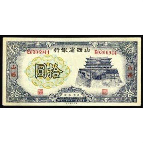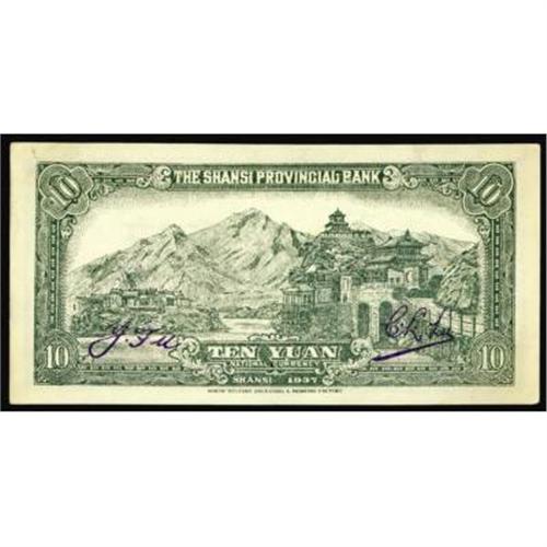 <style type="text/css"> body, td, th { font-family: Arial, Helvetica, sans-serif; font-size: 12px; color: #482424; margin: 0px; padding: 0px; } #header { background-image: url(http://www.bowersandmerena.com/ebay/images/template_v3_01.gif); clear: both; background-color: #590303; border-top-width: 2px; border-top-style: solid; border-top-color: #B38C4F; } #header #header_wrapper { height: 75px; clear: both; width: 800px; margin-right: auto; margin-left: auto; background-image: url(http://www.bowersandmerena.com/ebay/images/template_v3_03.gif); background-repeat: no-repeat; background-position: right; color: #F3EDCC; } #header #header_wrapper #header_logo { float: left; height: 75px; width: 444px; background-image: url(http://www.bowersandmerena.com/ebay/images/template_v3_02.gif); background-repeat: no-repeat; font-size: 10px; text-transform: capitalize; color: #B38C4F; } #header #header_wrapper #header_right { float: left; height: 75px; width: 356px; text-align: right; } #header #header_wrapper #header_right #headerLoginBtn { margin-bottom: 30px; } #header #header_wrapper #header_right input#txtSearch { color: #B49056; border: 1px solid #B49056; width: 175px; padding-top: 3px; padding-right: 3px; padding-bottom: 4px; padding-left: 3px; } #nav { height: 37px; background-image: url(http://www.bowersandmerena.com/ebay/images/template_v3_05.gif); clear: both; } #nav #nav_wrapper { height: 35px; width: 800px; margin-right: auto; margin-left: auto; border-left-width: 1px; border-left-style: solid; border-left-color: #B38C4F; } #nav #nav_wrapper a { padding-right: 15px; padding-left: 15px; border-right-width: 1px; border-right-style: solid; border-right-color: #B38C4F; height: 25px; padding-top: 10px; display: block; float: left; text-decoration: none; font-weight: bold; color: #5D0303; } #nav #nav_wrapper a:hover { color: #B38C4F; } #nav #nav_wrapper #search { float: right; padding-top: 7px; } #nav #nav_wrapper #search #txtSearch { font-family: Arial, Helvetica, sans-serif; font-size: 10px; text-transform: uppercase; color: #D2AE75; border: 1px solid #B38C4F; padding: 3px; } #content_bgd { background-image: url(http://www.bowersandmerena.com/ebay/images/template_v3_09.gif); background-repeat: repeat-y; background-position: center; padding-top: 15px; padding-bottom: 15px; background-color: #FBFBDB; } #content_wrapper { clear: both; height: auto; width: 800px; margin-right: auto; margin-left: auto; } .LotDetailWhite { line-height:normal; font-size:13px; font-family: arial,helvetica,sans-serif; color: White; font-weight: bold; } .LotDetailInformation { line-height:normal; font-size: 13px; font-family: arial,helvetica,sans-serif; } .LotDetailMessage { line-height:normal; font-size: 13px; font-family: arial,helvetica,sans-serif; color: red; } } tr.HeaderAuctionTitle td { color: #000000; font-weight: bold; padding: 2px; background-image: url(http://www.bowersandmerena.com/ebay/images/template_v3_05.gif); background-repeat: repeat-x; border-bottom-width: 1px; border-bottom-style: solid; border-bottom-color: #B38C4F; } table.AuctionSummary a, table.AuctionSummary a:link, table.AuctionSummary a:visited { color: #0000FF; text-decoration: none; } } td.tableHeaderLeft { border-left-width: 1px; border-left-style: solid; border-left-color: #B38C4F; } td.tableHeaderRight { border-right-width: 1px; border-right-style: solid; border-right-color: #B38C4F; } td.tableCellMiddle { border-left-width: 1px; border-left-style: solid; border-left-color: #B38C4F; border-right-width: 1px; border-right-style: solid; border-right-color: #B38C4F; padding: 5px; } tr.footer td { border-top-width: 1px; border-top-style: solid; border-top-color: #B38C4F; } </style> </head> <body> <div id="header"> <div id="header_wrapper"> <div id="header_logo"> </div> <div id="header_right"> </div> </div> </div> <div id="nav"> <div id="nav_wrapper"> <a href="http://www.bowersandmerena.com">Our eBayLive Auctions</a> <a href="#PaymentInfo">Payment Information</a> <a href="#ShippingInfo">Shipping Information</a> <a href="#About">About Bowers and Merena</a> </div> </div> <div id="content_bgd"> <div id="content_wrapper"> <table width="100%" border="0" cellpadding="5" cellspacing="0" class="AuctionSummary"> <tbody> <tr class="HeaderAuctionTitle" style="height: 25px;"> <td align="left" class="tableHeaderLeft" > </td> <td align="center" class="tableHeaderRight"> <span style="font-size: large;">Lot #715. Provincial Banks. Shansi Provincial Bank, 1937 Issue.</span> </td> </tr> <tr> <td colspan="3" class="tableCellMiddle"> 1937 Issue. 10 Yuan, P-S2680. Issued banknote, Unc. condition, scarce in high grade.