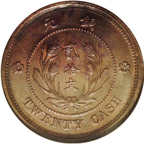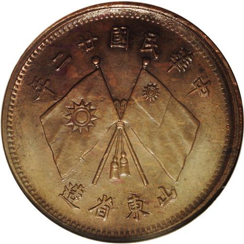 <B>Shantung. Pattern 20 Cents 1933,</B></I> KM-Pn13, MS64 NGC Brown. Glossy surfaces with traces of original mint red color. Very rare.