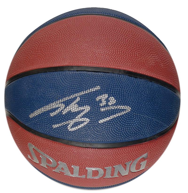 Official Spalding red and blue outdoor All Star basketball signed in silver ink on a side panel. In very fine condition.