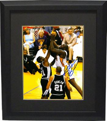 After four years with the Magic, Shaquille O'Neal signed as a free agent with the Los Angeles Lakers. They won three consecutive championships in 2000, 2001, and 2002. O'Neal's individual accolades include the 1999–2000 MVP award, the 1992–93 NBA Rookie of the Year award, 15 All-Star game selections, three All-Star Game MVP awards, three Finals MVP awards, two scoring titles, 14 All-NBA team selections, and three NBA All-Defensive Team selections. He is one of only three players to win NBA MVP, All-Star game MVP and Finals MVP awards in the same year (2000). Shaquille O'Neal has hand signed this Los Angeles Lakers 8x10 Photo vs the Spurs. Certificate of Authenticity from Athlon Sports. Custom Black Mat and Premium Black Color Framed as shown.