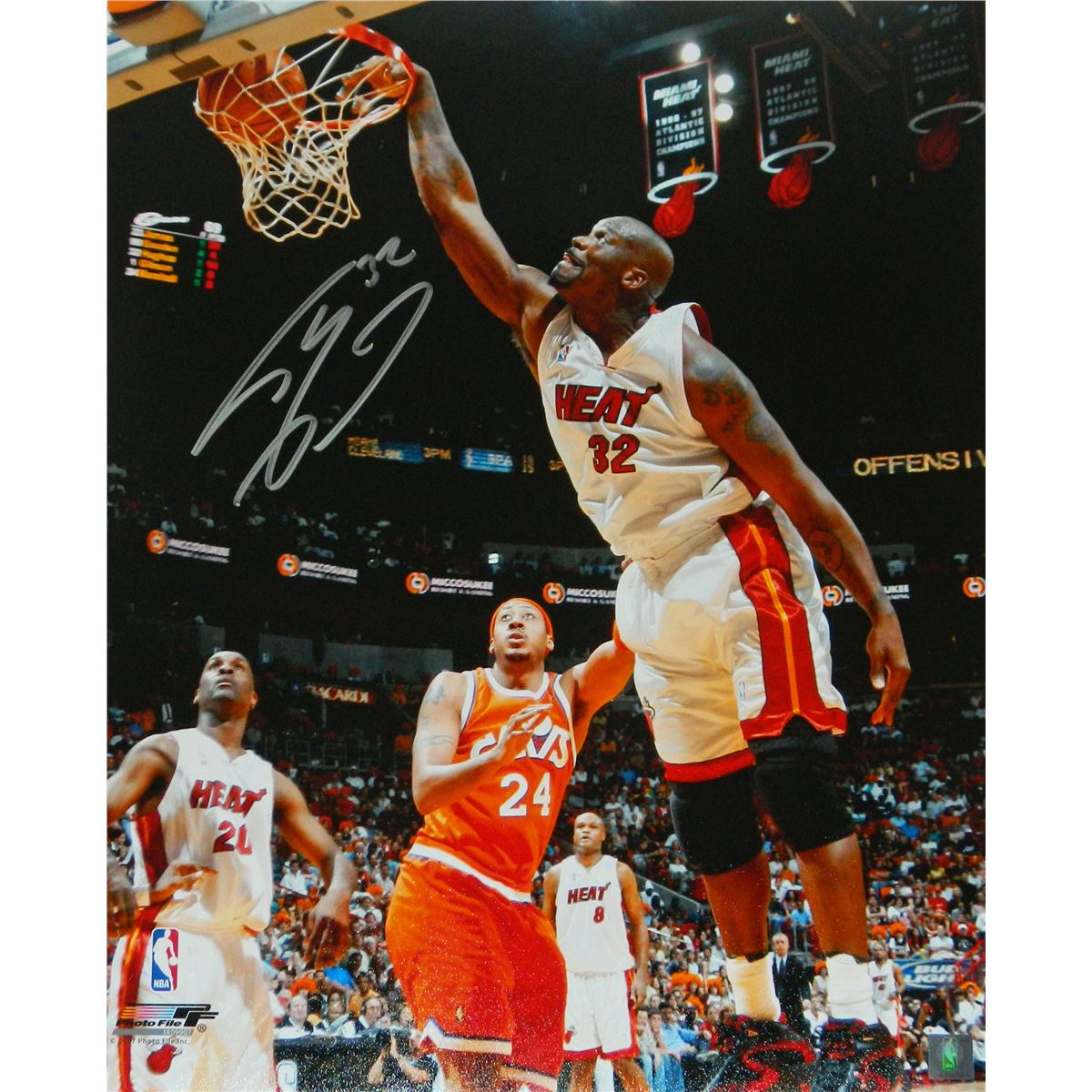 Shaquille O'Neal signed Miami Heat slam dunk 16x20 photo. Item comes with a Schwartz Sports Memorabilia tamper-proof numbered hologram and Certificate of Authenticity which can be verified online.