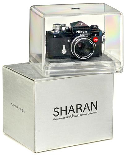 "Sharan-Nikon F" (schwarz) Nr. C03926, für Minox-Film (8 x 11 mm), "Mega House Mini Classic Camera Collection". Mit Anleitung (japanisch), Plexiglasbehälter und Verpackung. - Selten!