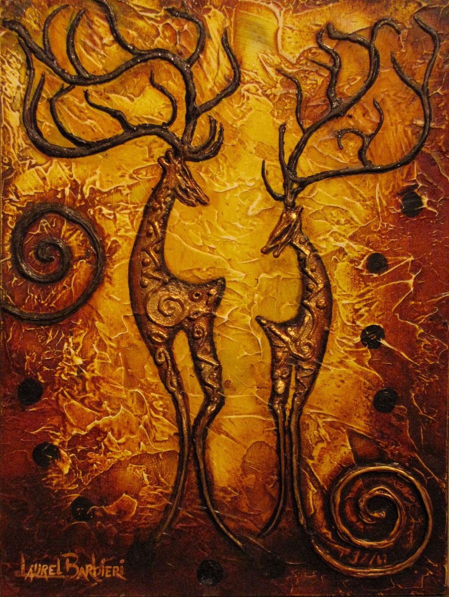 Laurel's painting method is heavily textured, an art form she created and calls "Relief Sculpture." Her method of art is uniquely suited to convey the intensity of emotion and the texture of the paintings in Neolithic treasures, many found in caves where our ancestors once lived and celebrated life.